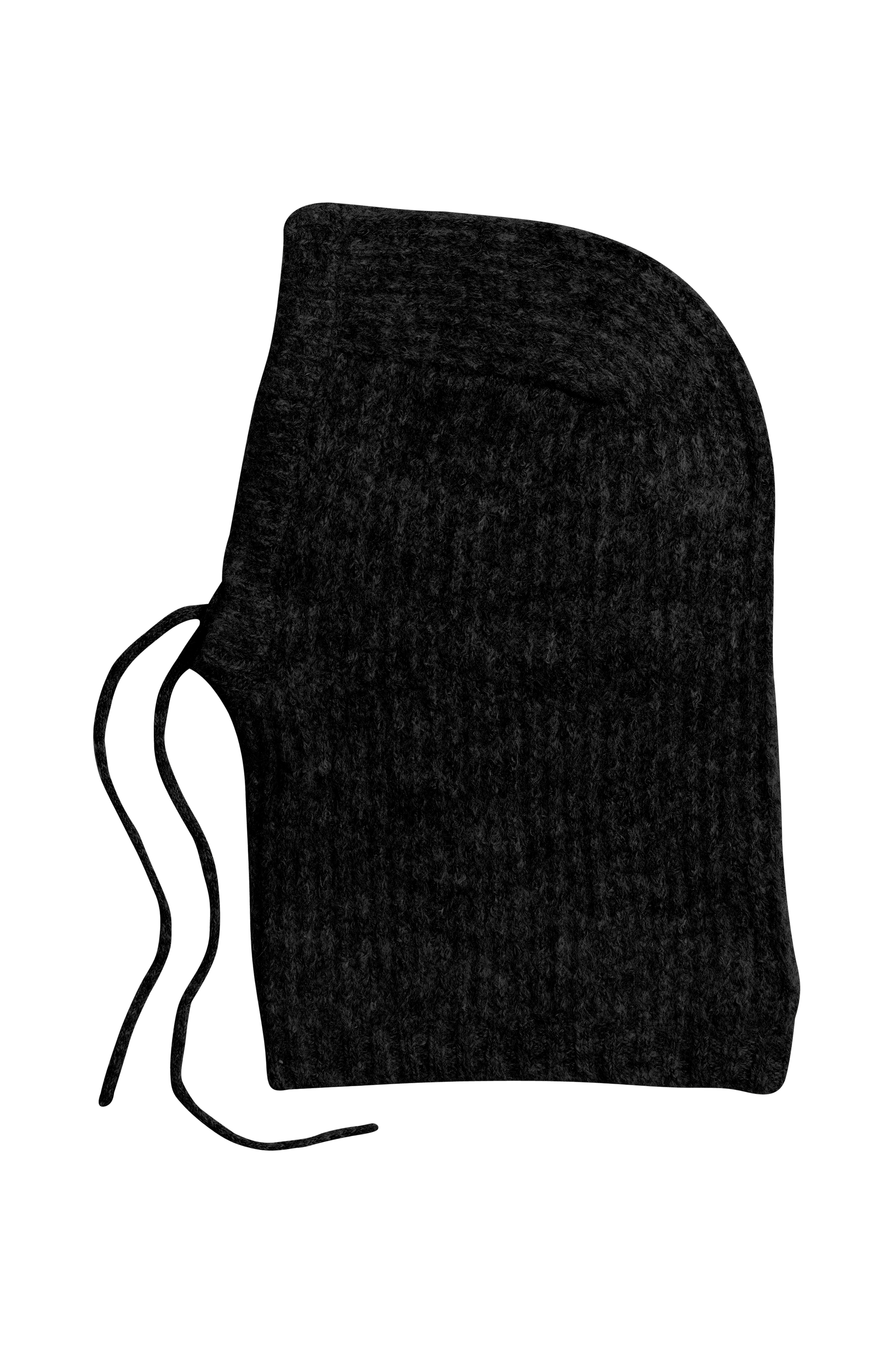 • Mjuk, ribbstickad modell• Dubbel, ribbstickad kant runt ansiktet med dragsko