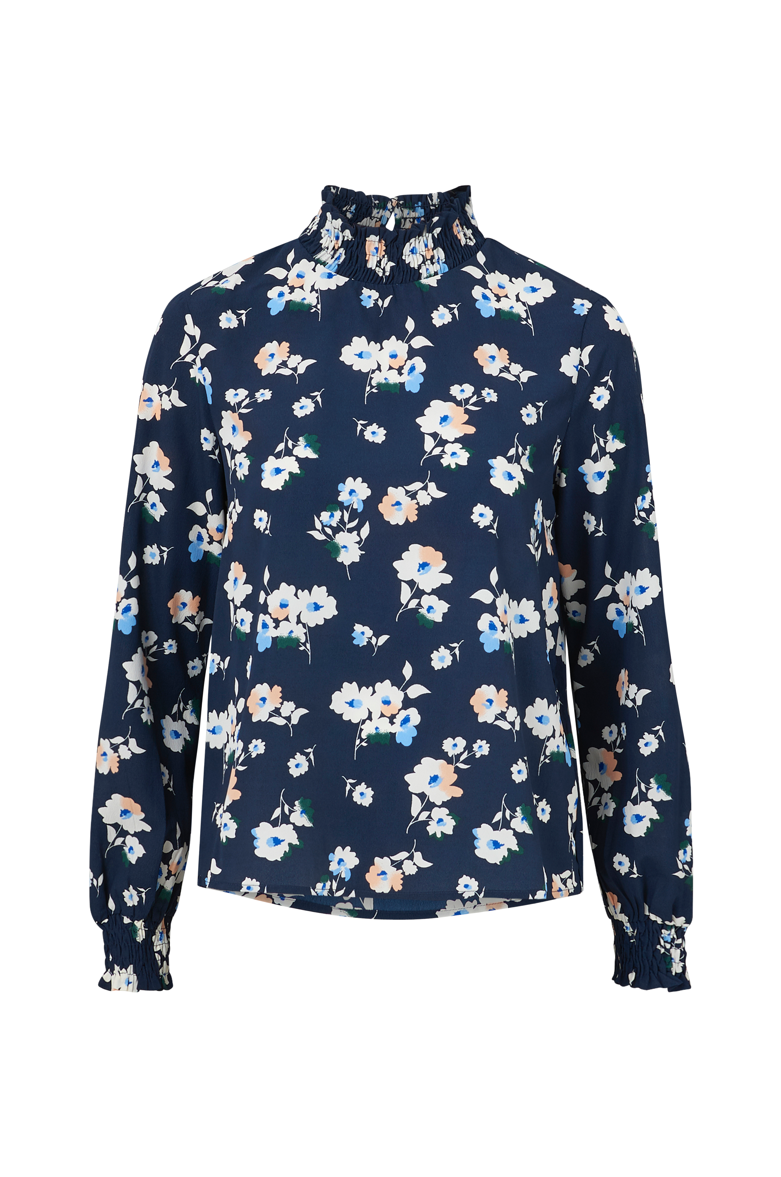 Blus pcJenni LS Top från Pieces. Rak modell i vävd kvalitet med hög krage i smockresår som har sprund och knappar i nacken. Lång, rak ärm med smockresår i ärmslut.