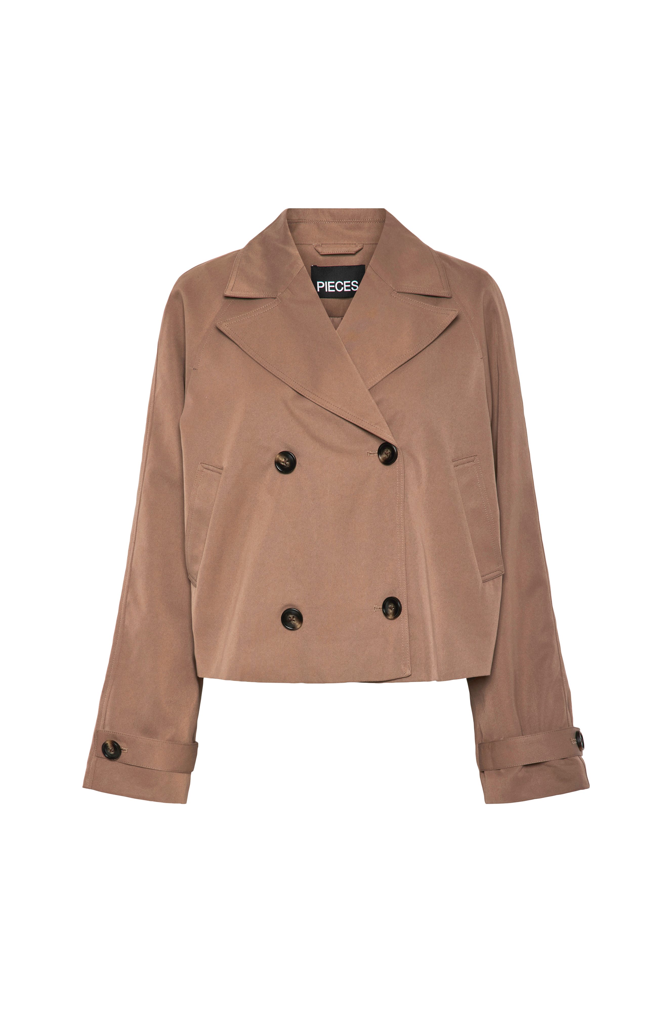 • Dubbelknäppt modell med slag• Sidfickor• Dekorativa slejfar i ärmsluten• Vävt foder• Längd: 57 cm i storlek S