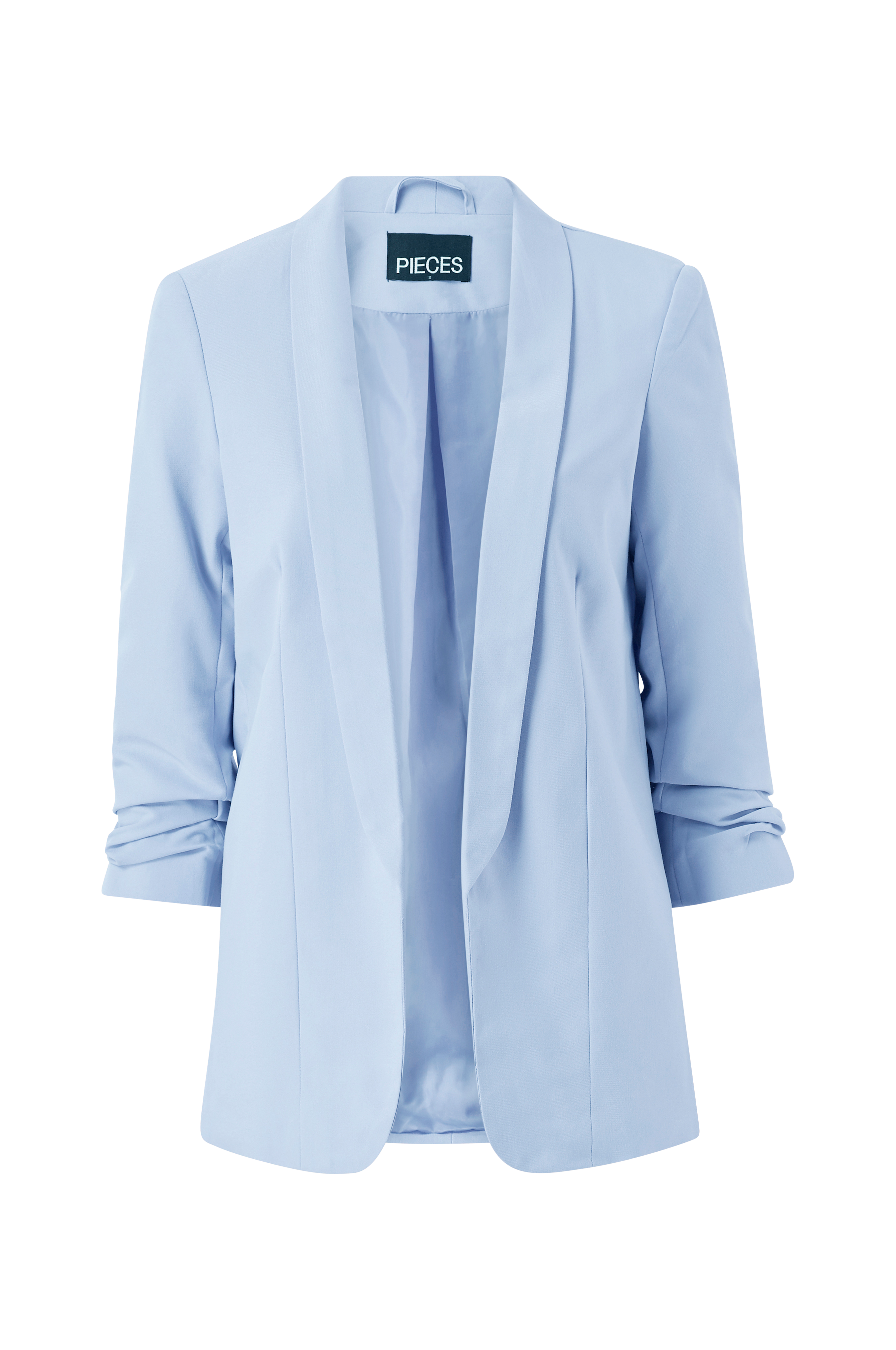 Kavaj pcBoss 3/4 Blazer från Pieces i öppen modell med sjalkrage och 3/4-långa ärmar med rynkad nederdel. Tunna axelvaddar ger fin passform. Gjord i vävd kvalitet med lätt stretch och tunt, vävt foder.
