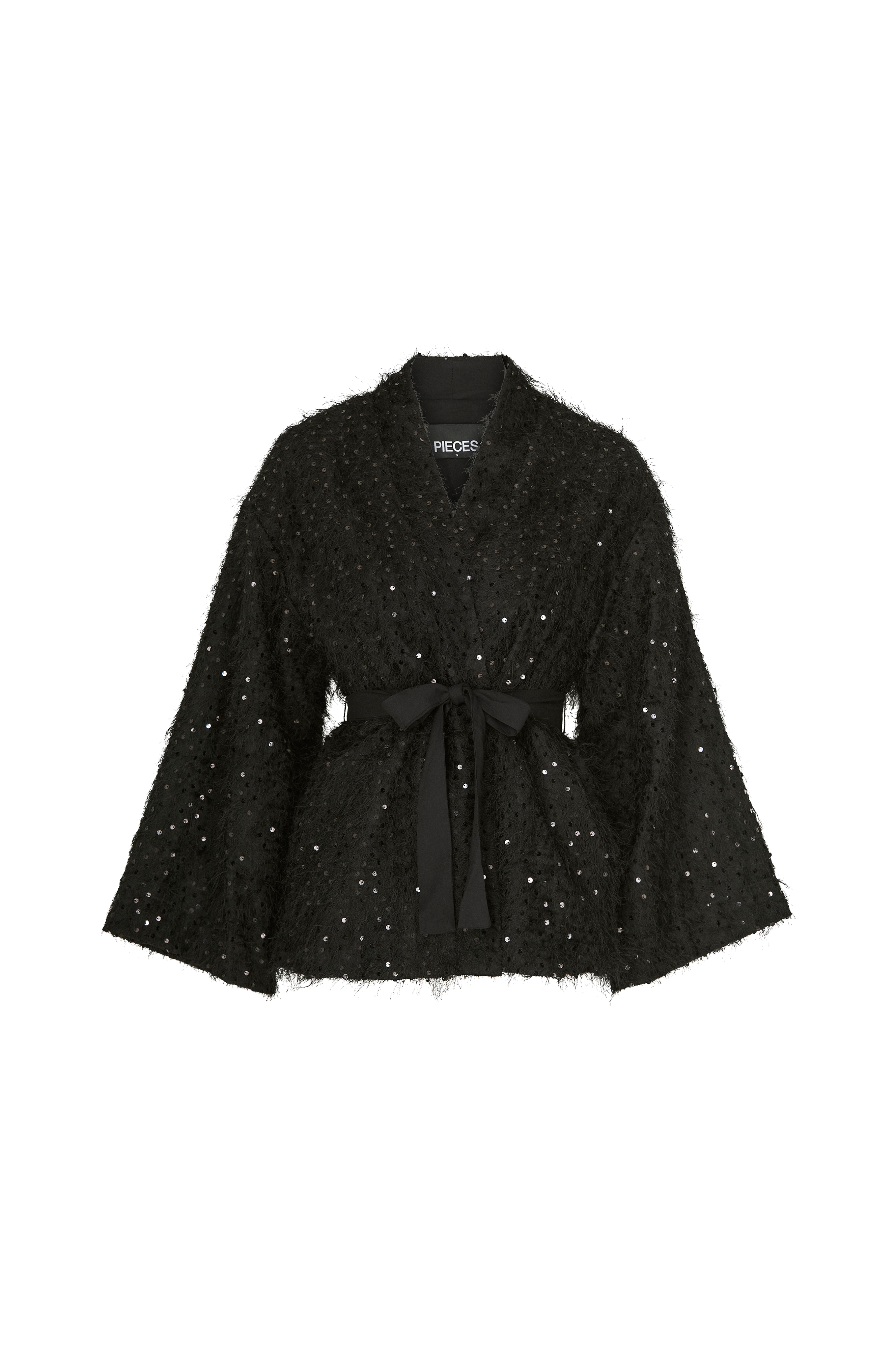 • Hårig yta med paljetter• Knytskärp i textil i midjan• Vida ärmar• Fodrad