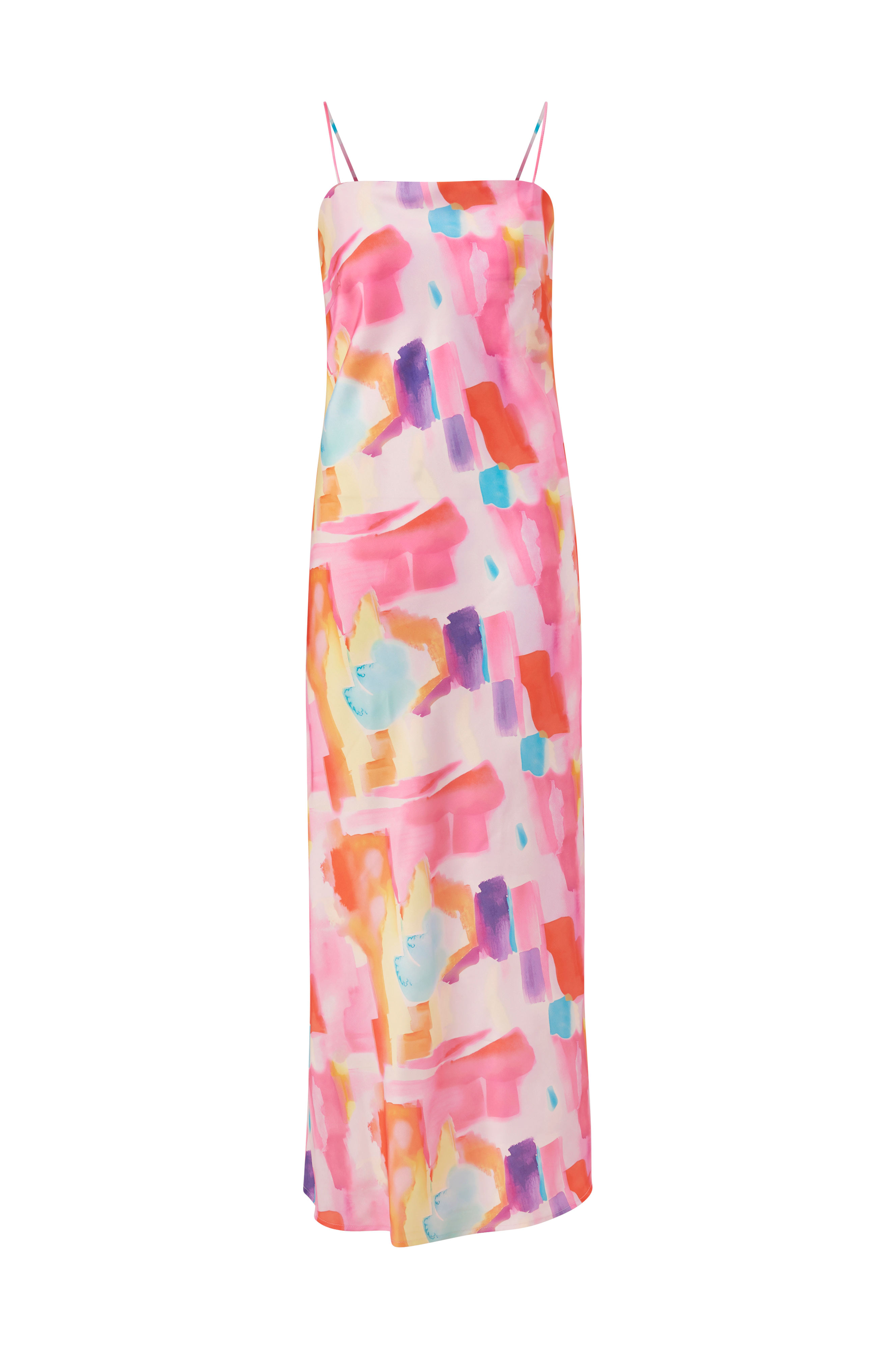 • Lång, färgglad klänning• Smala axelband• Längd: 140 cm i storlek S