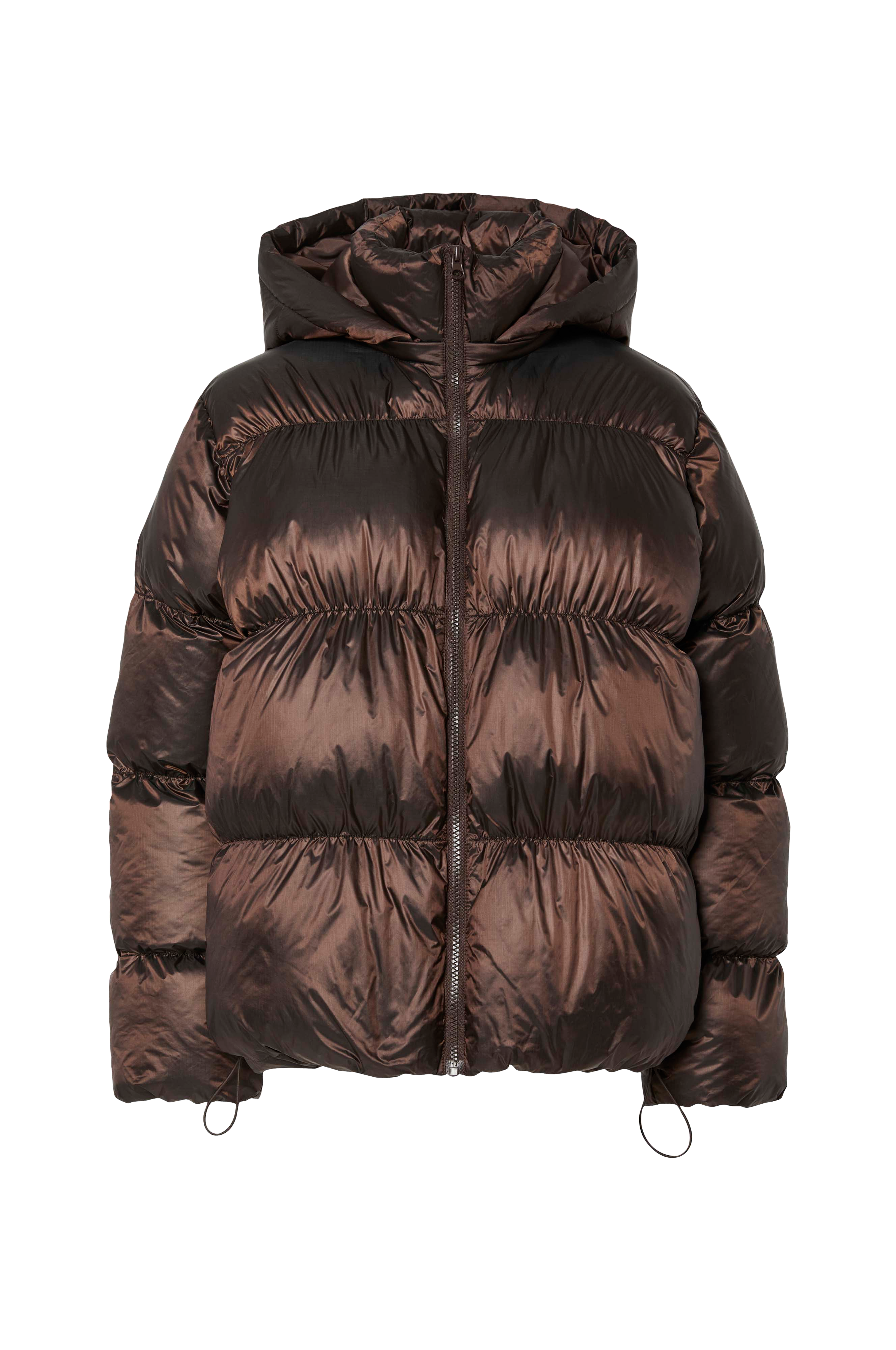 • Quiltad, vadderad pufferjacka med lätt glansigt material• Avtagbar huva• Hög krage• Dragkedja fram• Resår i ärmsluten• Öppna sidfickor• Dragsko i nederkanten• Längd: 66 cm i storlek S