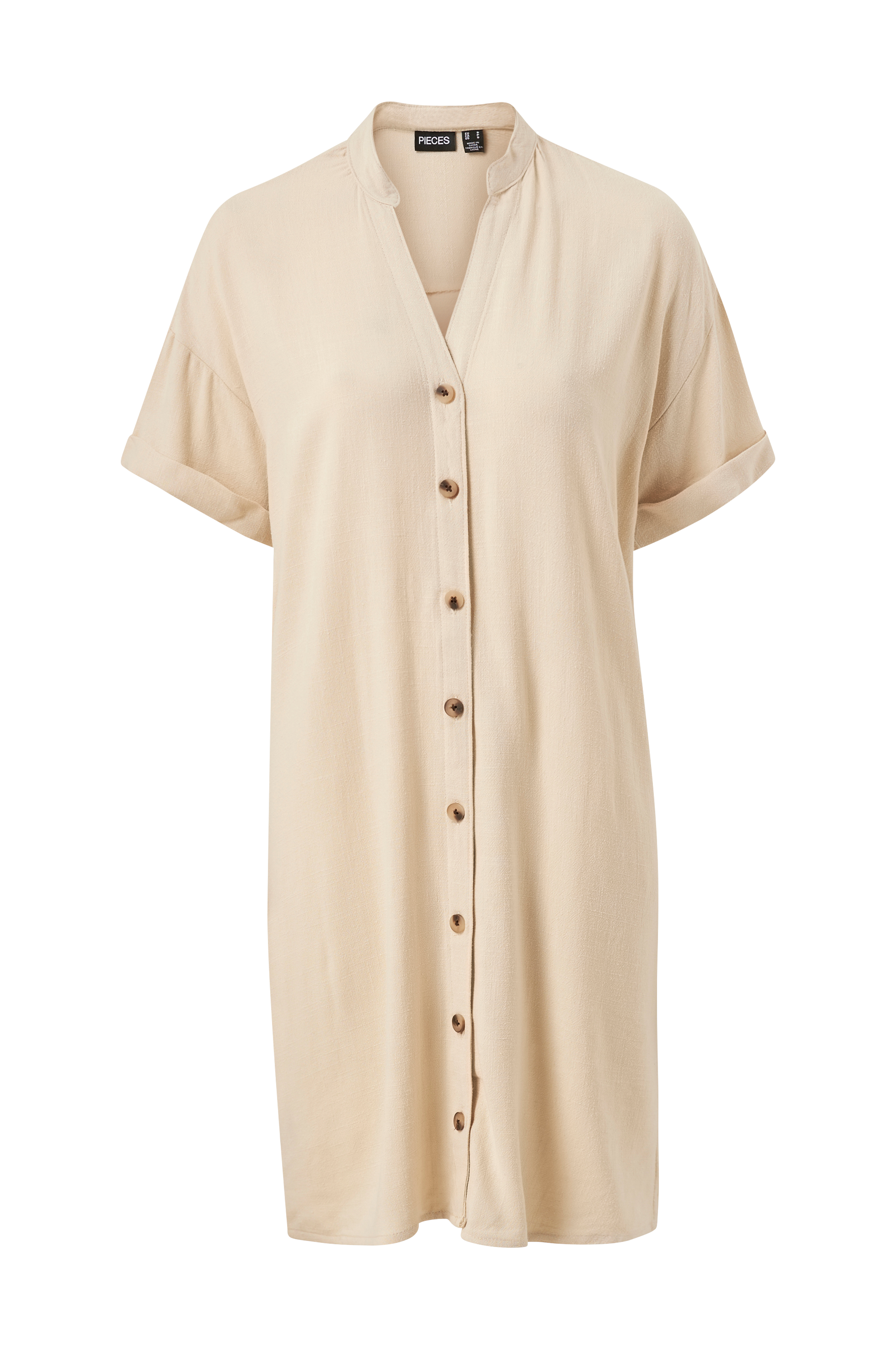 • Klänning i linnemix• V-ringning• Knappar fram• Korta ärmar med uppvik• Rak, lös passform• Längd: 96 cm i storlek S