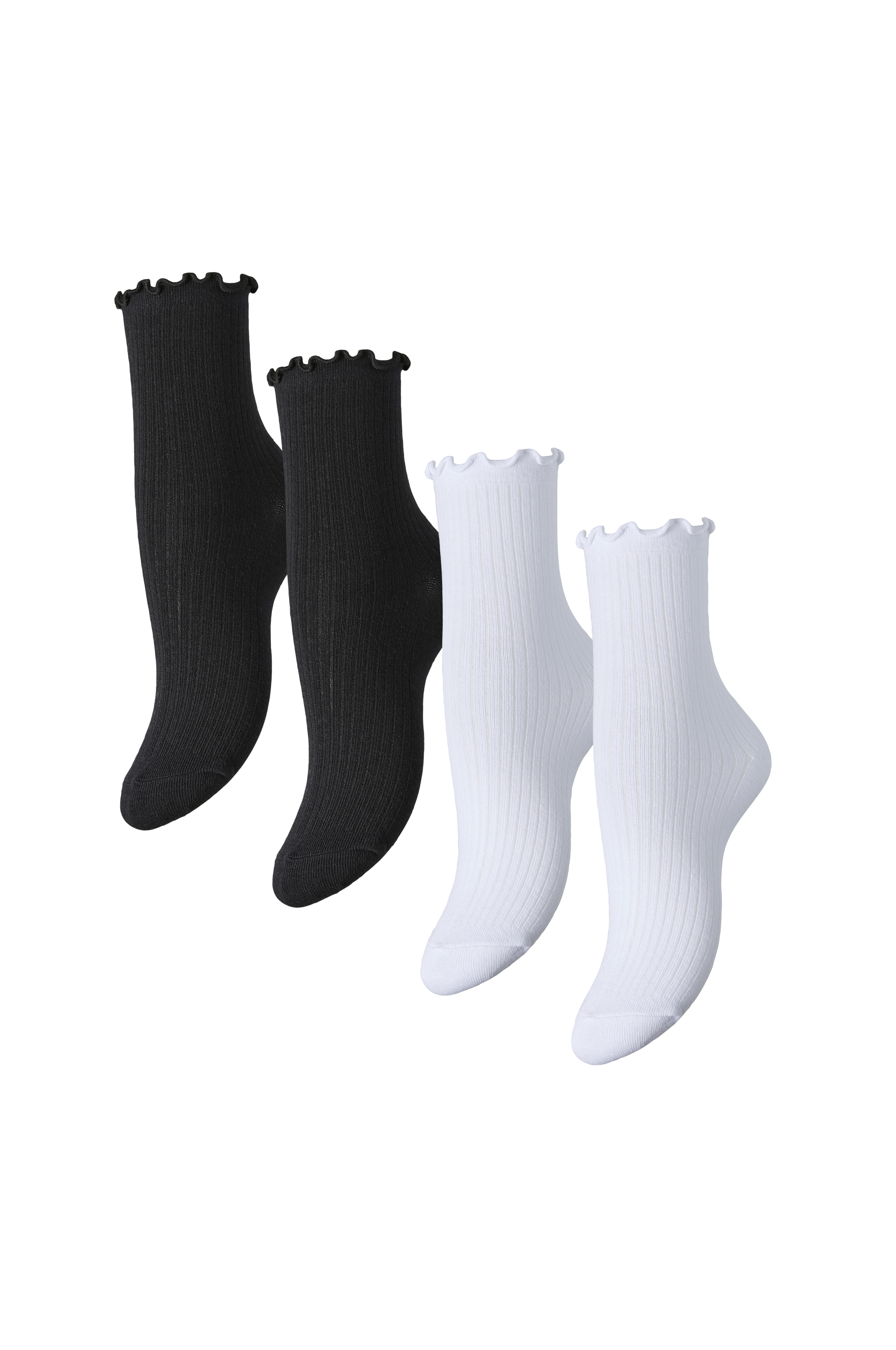 • 4-packa strumpor med ribbstickning på ovansidan• Högt skaft med vågig kant upptill