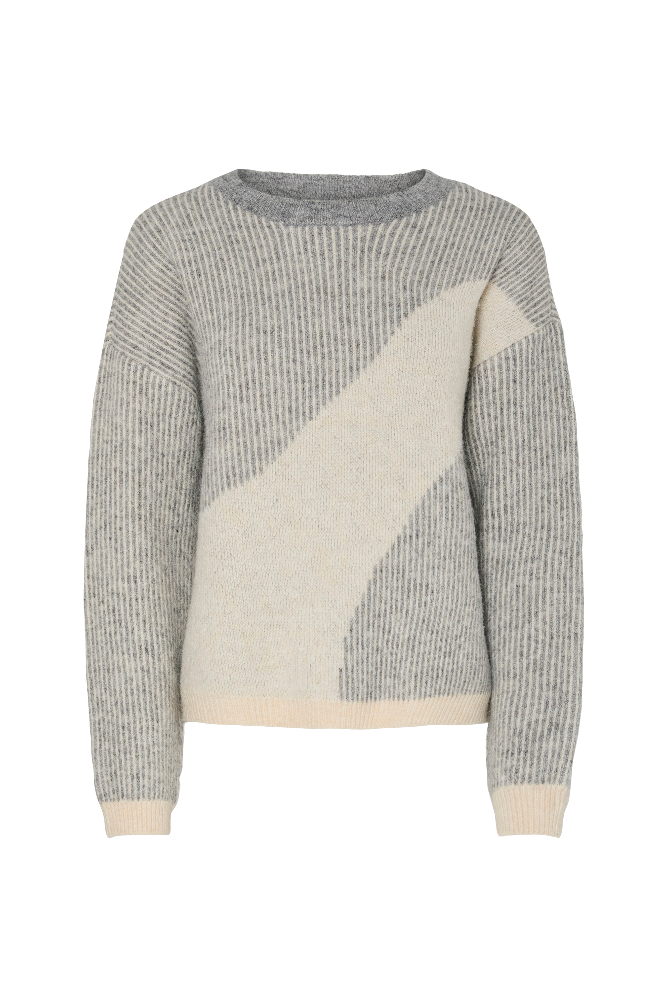 • Mönstrad, stickad tröja• Rund, ribbstickad halsringning• Ribbstickning i ärmsluten och i nederkanten