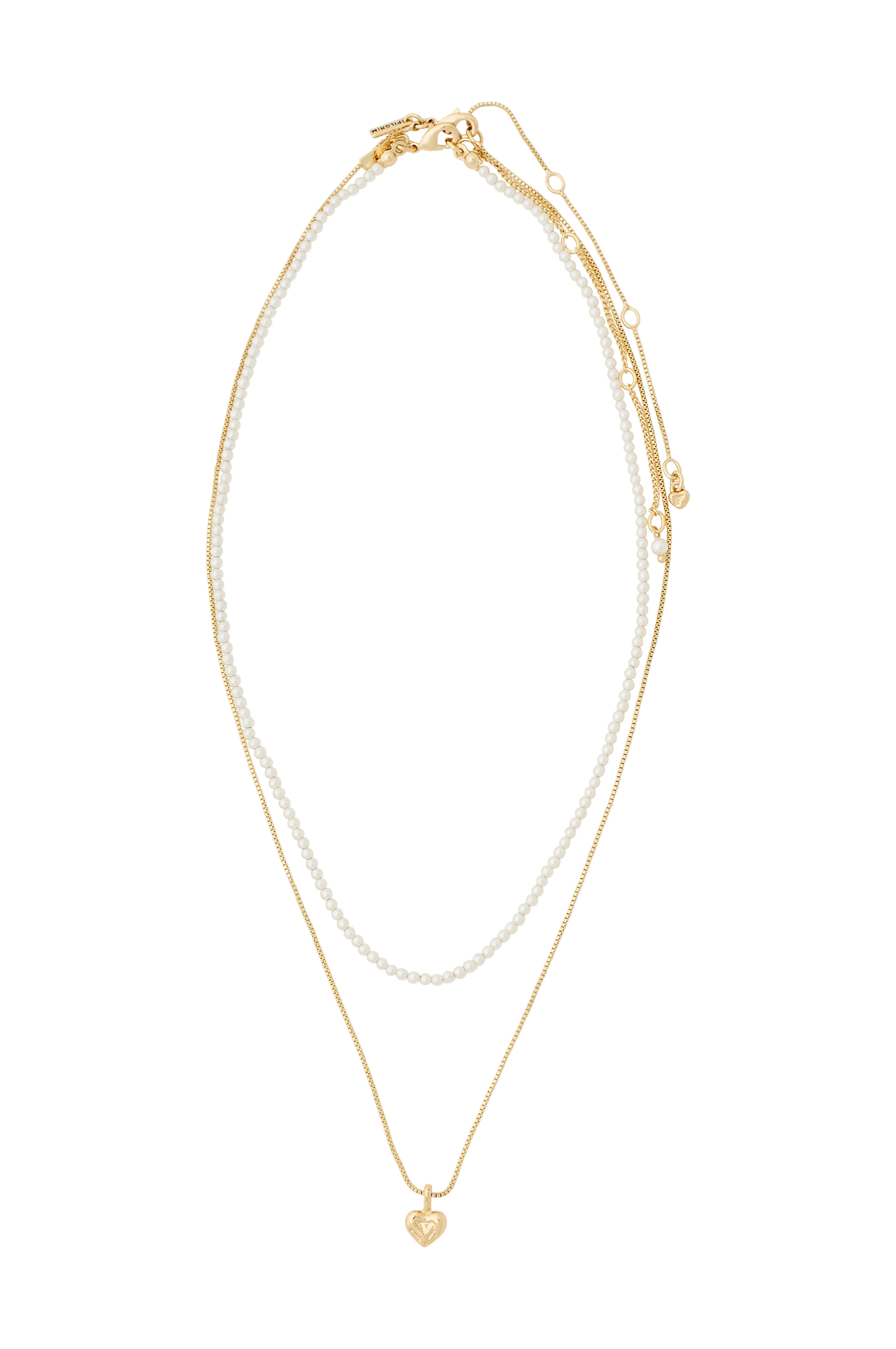Låt kärleken råda och släpp loss din inre fashionista med Arlet necklaces från Pilgrim, där du får 2 separata kedjor i ett set. En tunn, guldpläterad boxkedja med ett charmigt litet hjärta och ett pärlhalsband med fina vita glaspärlor - perfekt för att skapa en lager-på-lager-look. Din nya go-to-piece för vardagsoutfits eller ditt enkla men snygga statement för kvällsäventyr. Ett kit som gör allt. Kedjorna mäter 38/44 cm + 9 cm förlängningskedja.