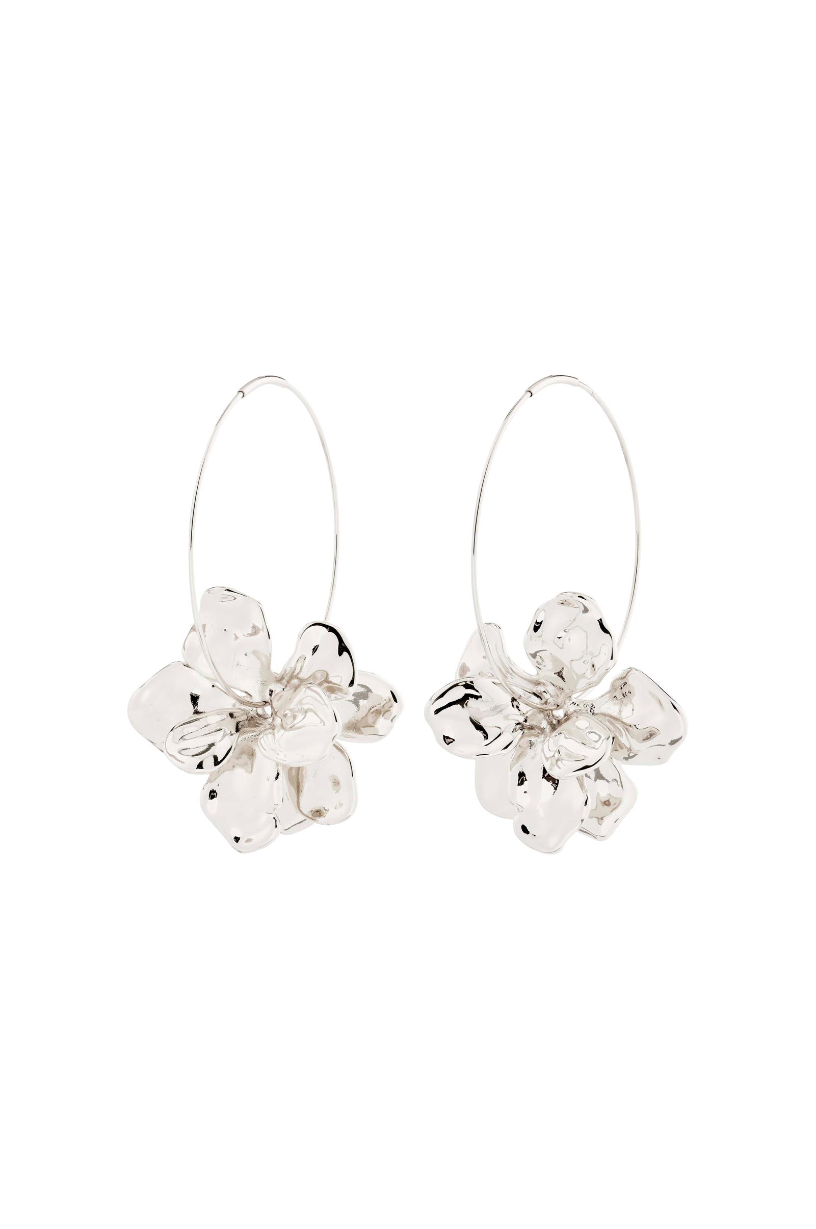 • Stora, runda, silverpläterade örhängen• Dekorativ blomma