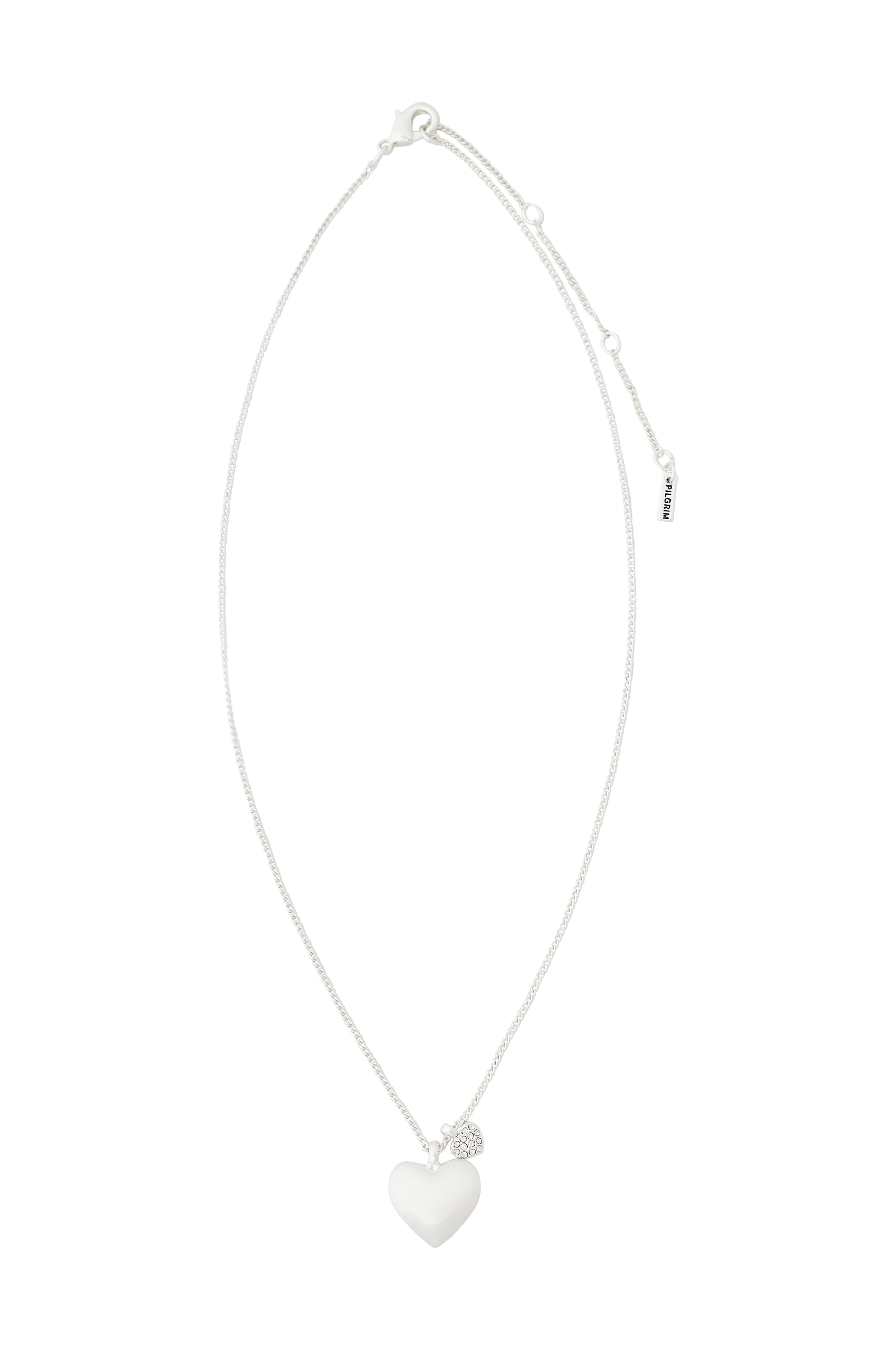 Fint och romantiskt guldpläterat berlockhalsband med två hjärthängen Ett stort hjärta med sammetsmatt finish och ett mindre som är bestrött med klara gnistrande kristaller. Halsbandet är ett s.k. collarbone necklace som sitter vackert på nyckelbenet, 40 cm. med 9 cm. justerbar kedja. Finns även i guld- och roséguldpläterat utförande.