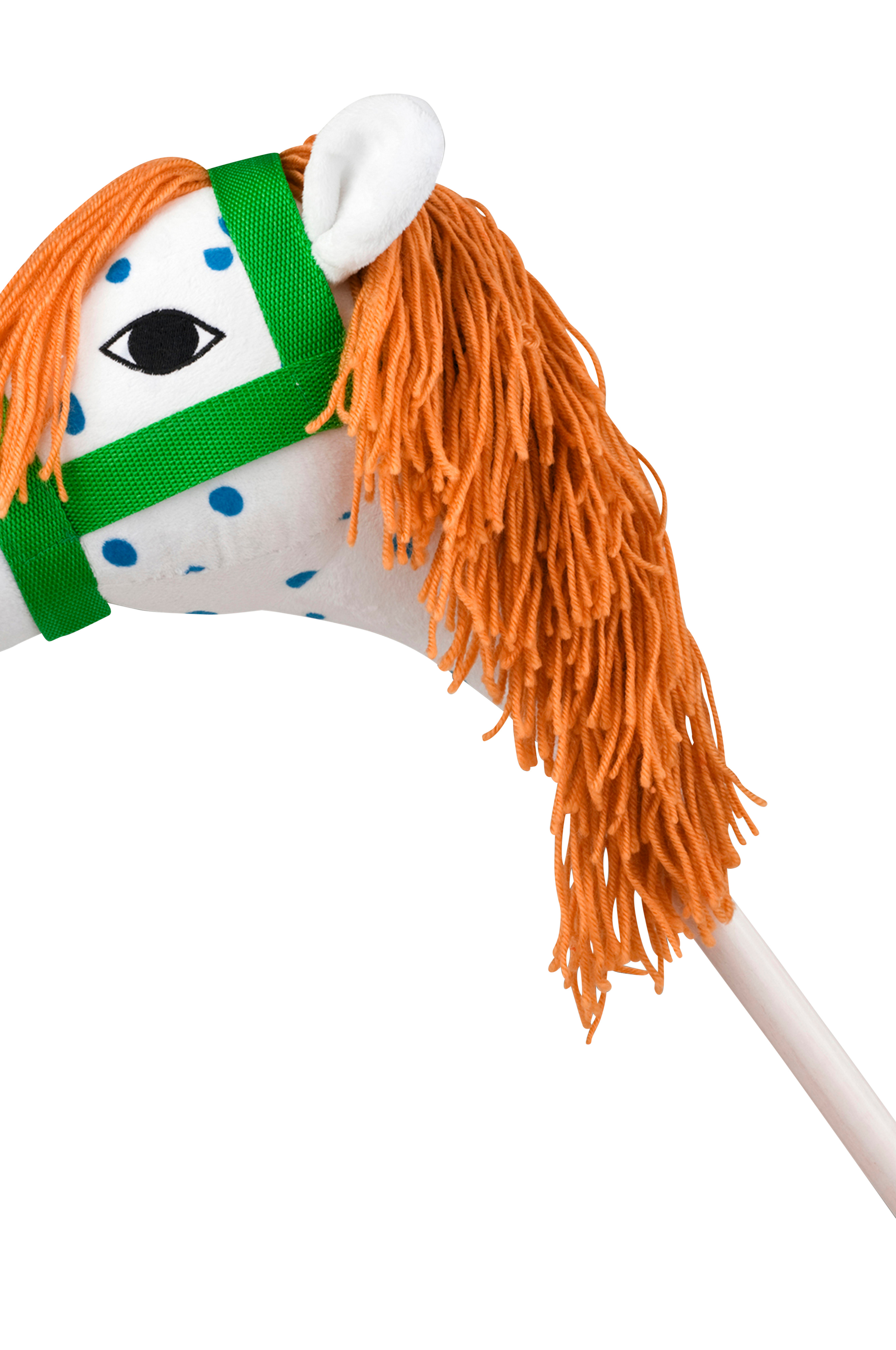 Pippis häst Lilla Gubben som käpphäst. Alltid redo för en ridtur!