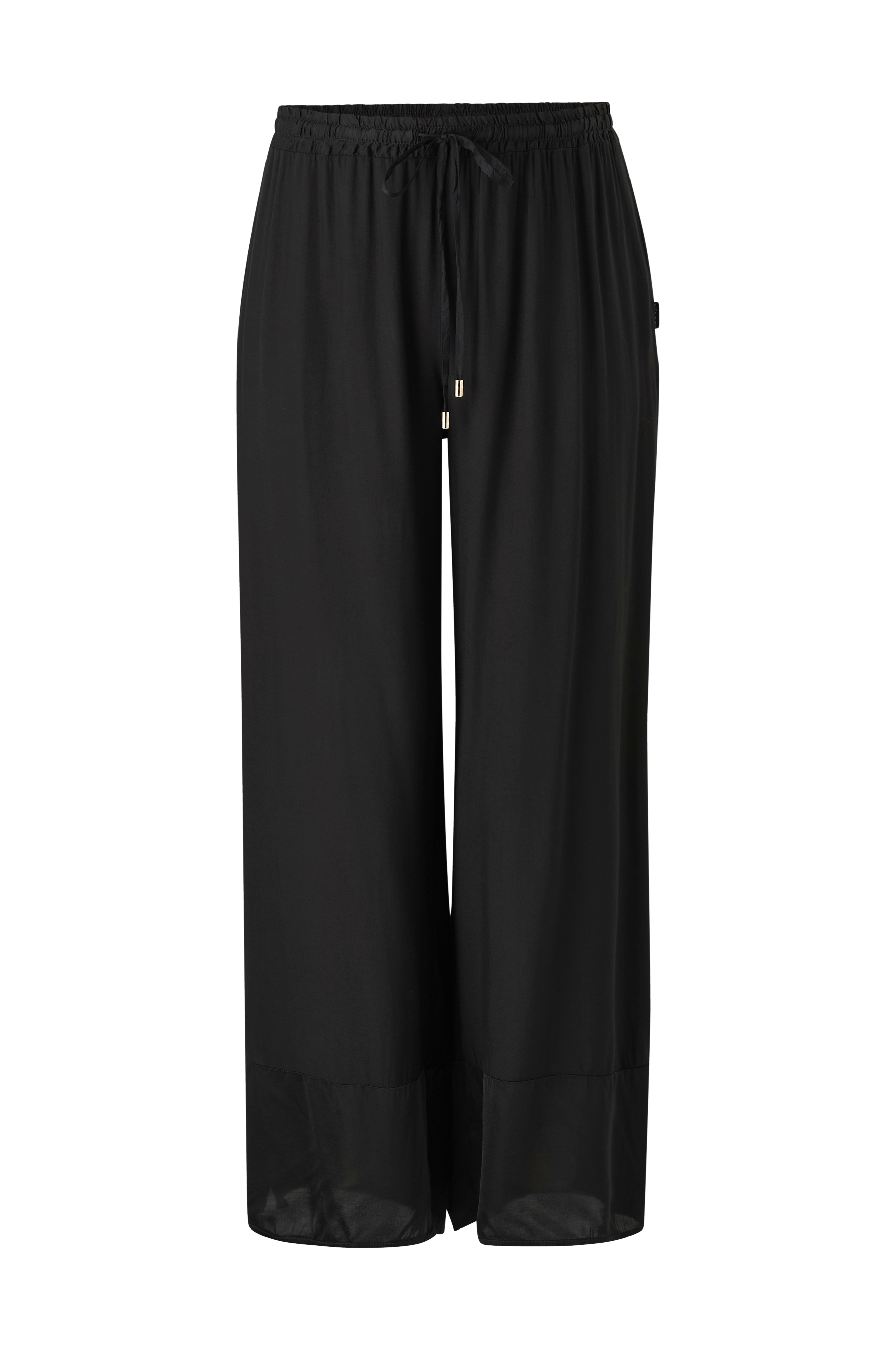 • Plusstorlekar• Modell med vida, raka ben• Bred infällning med sprund i bensluten• Linning med resår och dragsko• Beninnerlängd: 79 cm i storlek M
