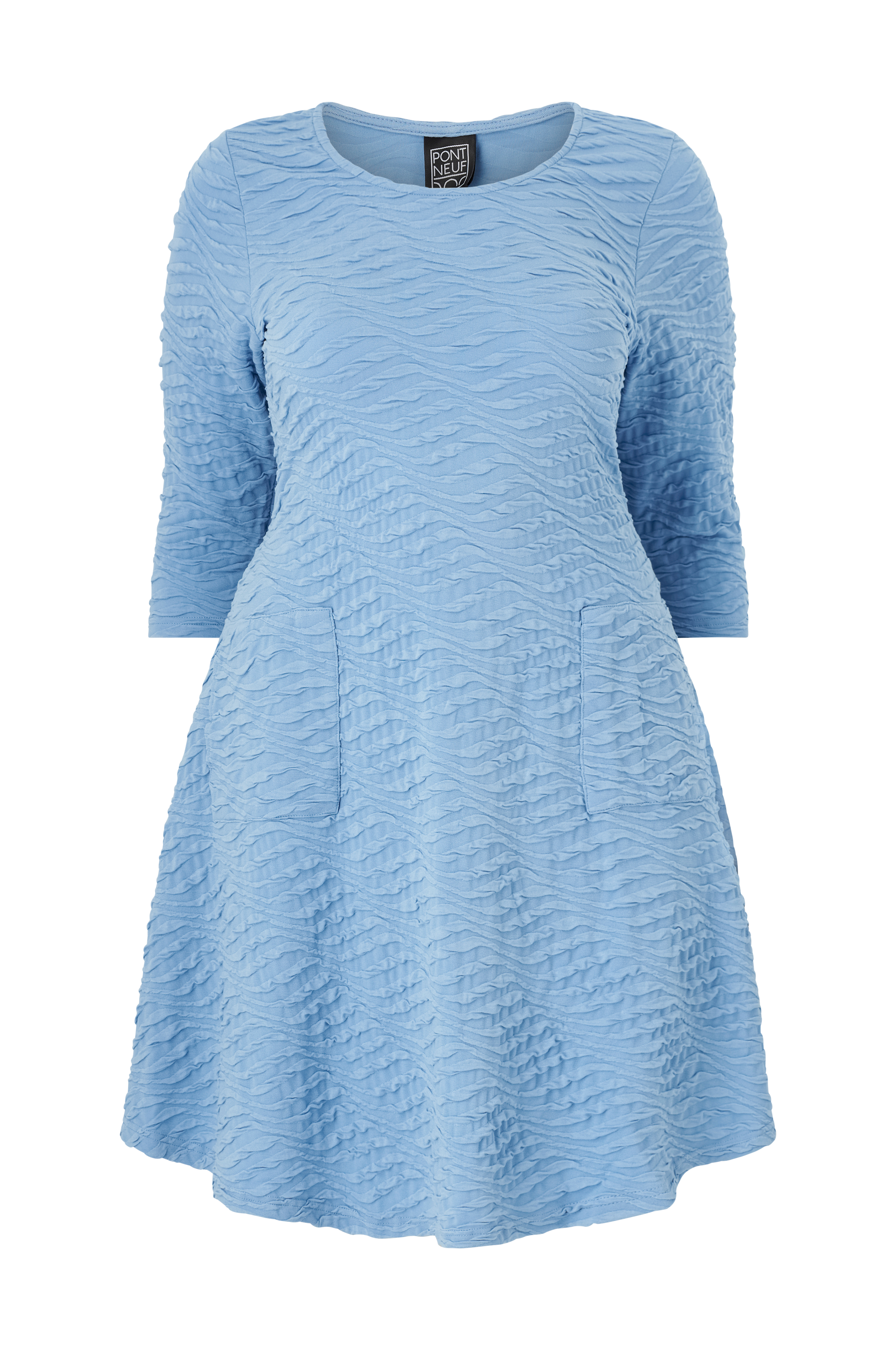 • Plusstorlekar• Utsvängd, strukturmönstrad modell i jersey• Rund hals• Rak, 3/4-lång ärm• Fickor• Längd: 106 cm i storlek M