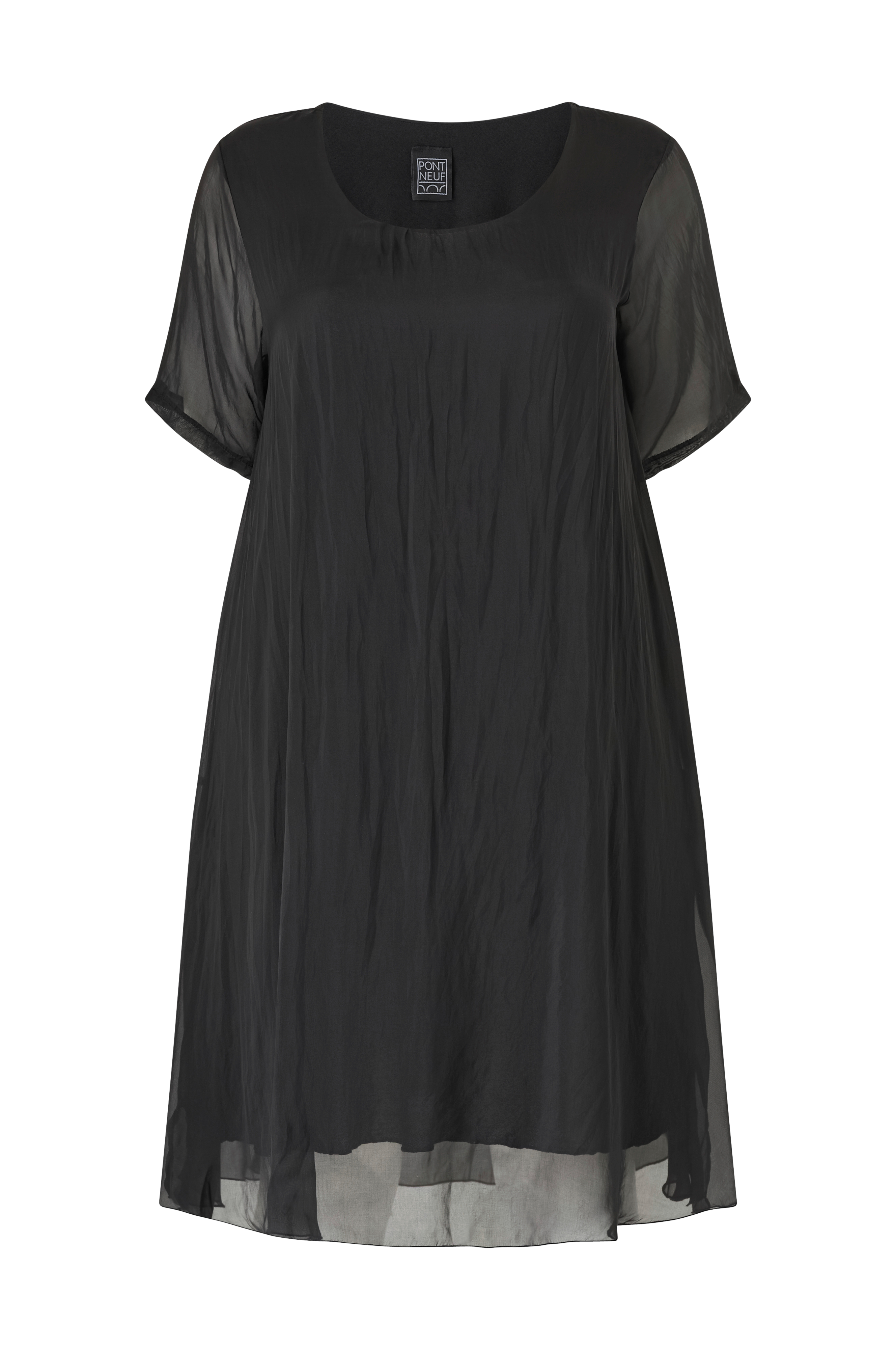 • Klänning i viskosmix med silkeskänsla • Rund hals • Korta ärmar • Mjukt textilfoder • Slits nedtill i sidorna • Plusstorlekar • Längd: 116 cm i storlek L/XL