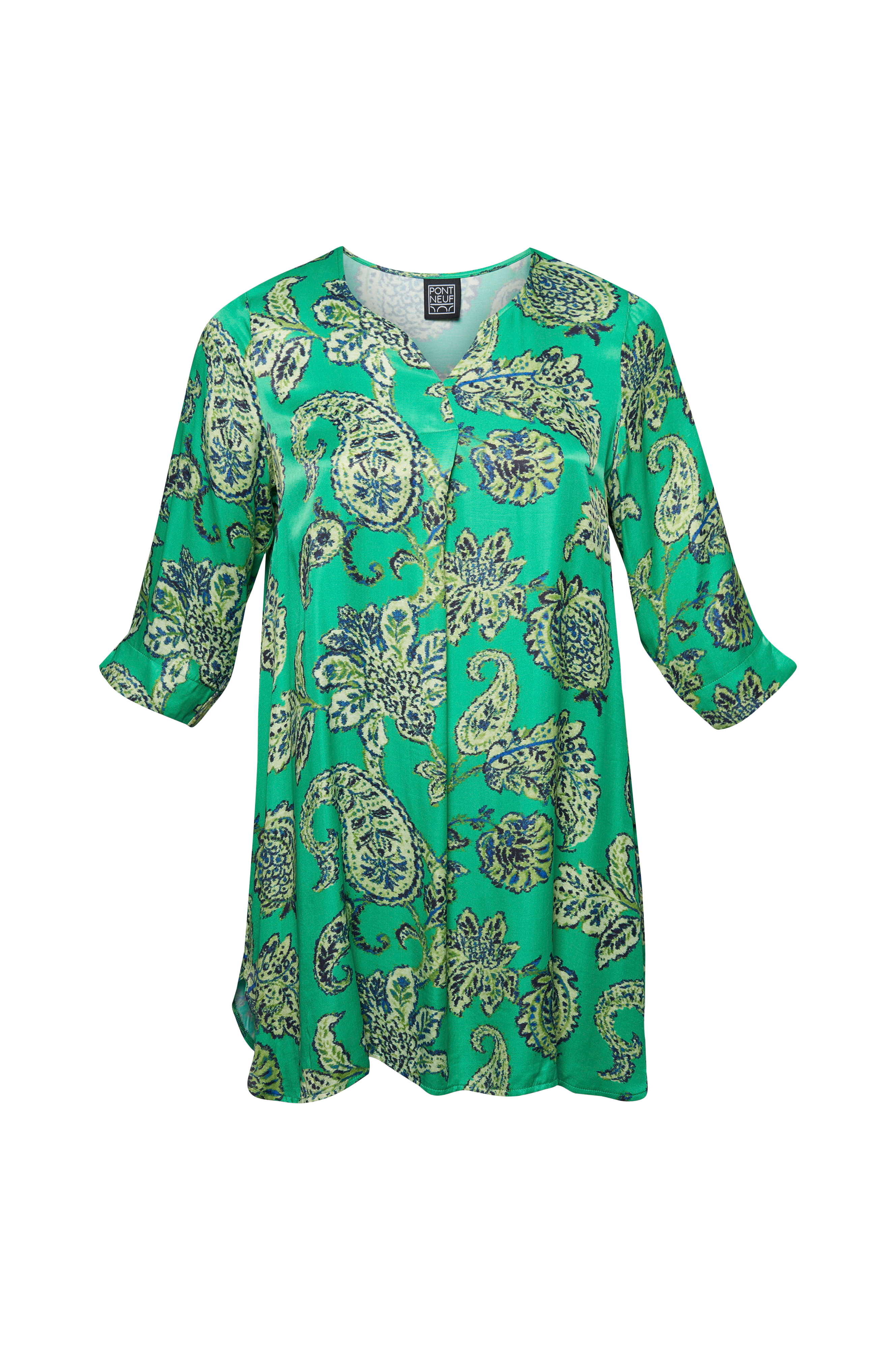 • Plusstorlekar • Lös a-linjeform • V-ringad hals • 3/4-långa ärmar • Veck fram • Slitsar nedtill i sidorna och i ärmsluten • Längd: 93 cm i storlek 42/44 • Produkten innehåller LENZING™ ECOVERO™ viskosfibrer som är tillverkade av mer hållbart trä från certifierade och kontrollerade källor. LENZING™ ECOVERO™-fibrer är certifierade enligt EU Ecolabel, EU:s officiella miljömärkning, vilket innebär att materialet uppfyller stränga krav på hållbarhet under hela livscykeln: från råmaterialutvinning till produktion, distribution och kassering. Tillverkningen av LENZING™ ECOVERO™-fibrer ger upp till 50% lägre utsläpp och vattenpåverkan jämfört med vanlig viskos. LENZING™ och ECOVERO™ är varumärken som tillhör Lenzing AG.