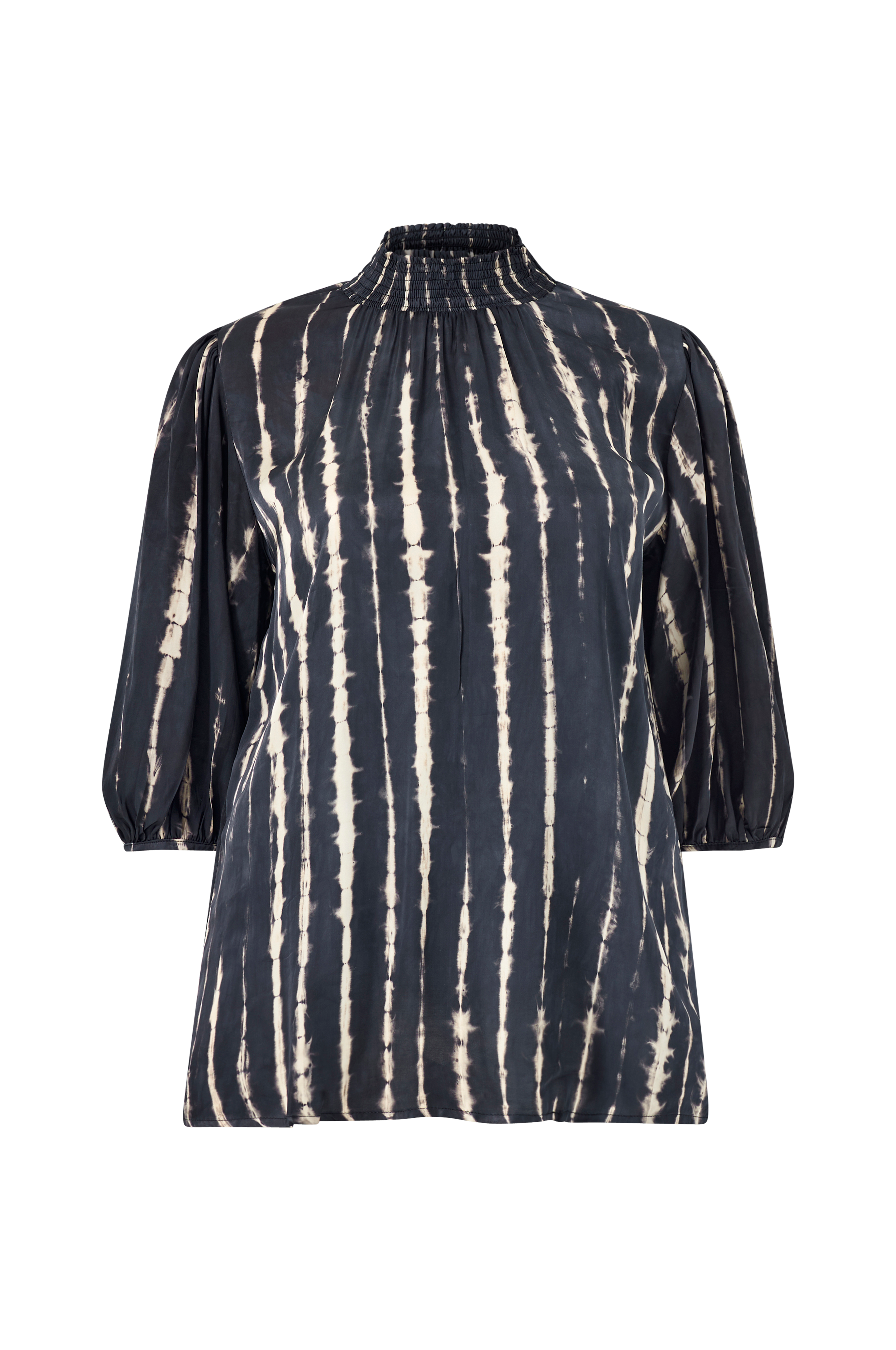 • Rak, ledig modell i satin • Hög krage med resårsömmar • Halvlång, extra vid ärm • Produkten är certifierad enligt STANDARD 100 by OEKO-TEX®. Certifieringen garanterar att produkten är testad och fri från ämnen som kan vara skadliga för hälsan och miljön.