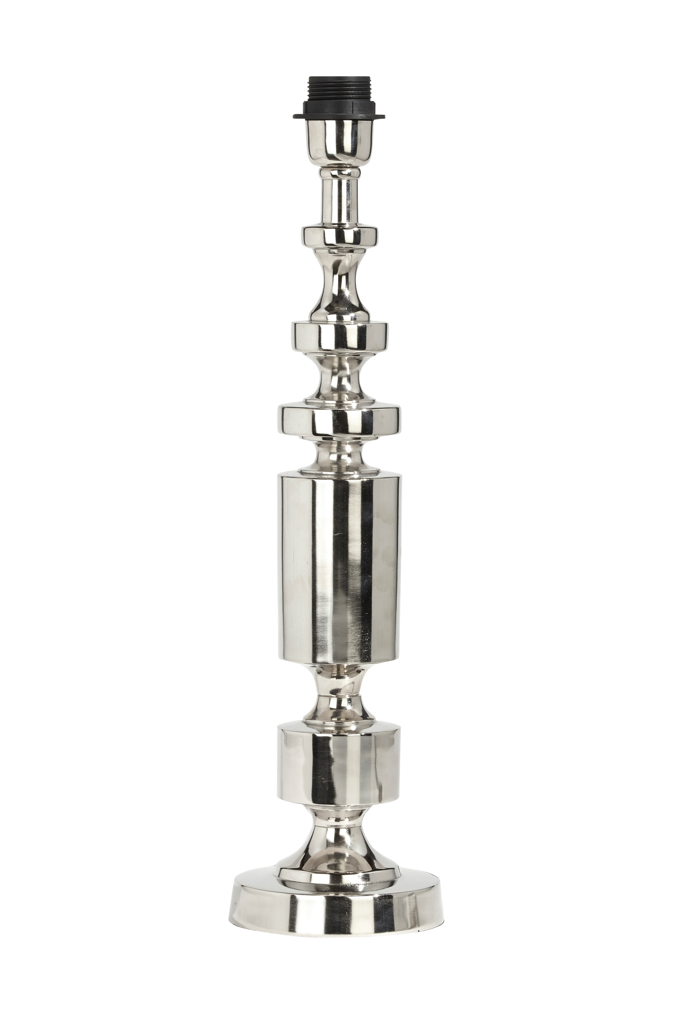 Art deco lampfot är både stilig och vacker med sin cylindriska form. Lampfoten är tillverkad av metall med en kromfinish, vilket ger en lyxig känsla i din inredning. Lampfoten har en sladd med strömbrytare på. Höjd 51 cm, bredd 13,5 cm och djup 13,5 cm.