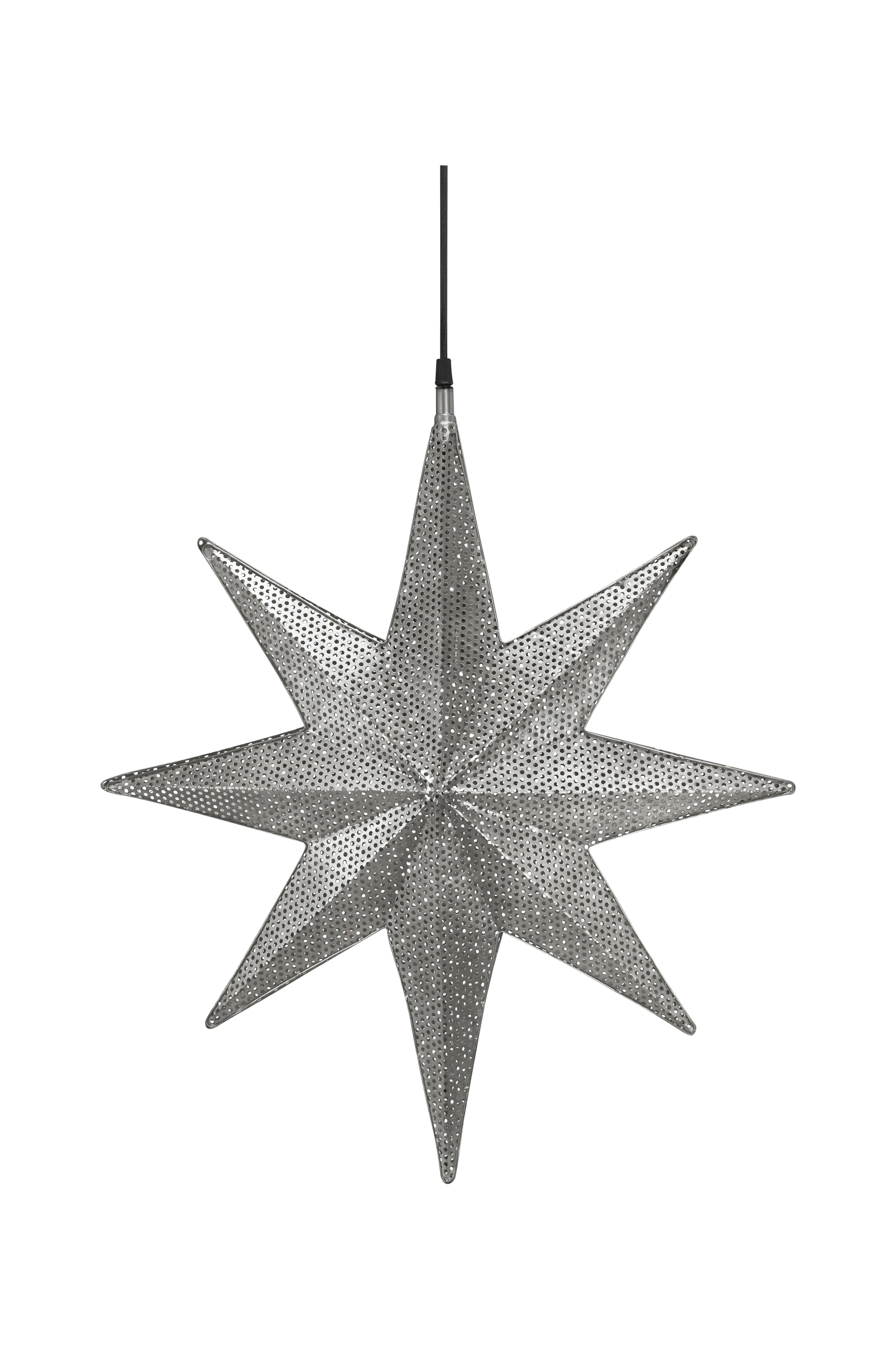 Julstjärna Capella är en hängande adventsstjärna i metall med perforerade hål. En tuff stjärna som sprider ett fint ljus och skapar en härlig julstämning i hemmet. Stjärnan har en 3,5 meter lång textilsladd med krok och väggkontakt och är avsedd för ljuskällor med E27 sockel. Stjärnan öppnas med en lucka på baksidan. Öppna partier vid sidorna. Höjd 60 cm, bredd 51 cm, djup 12 cm.