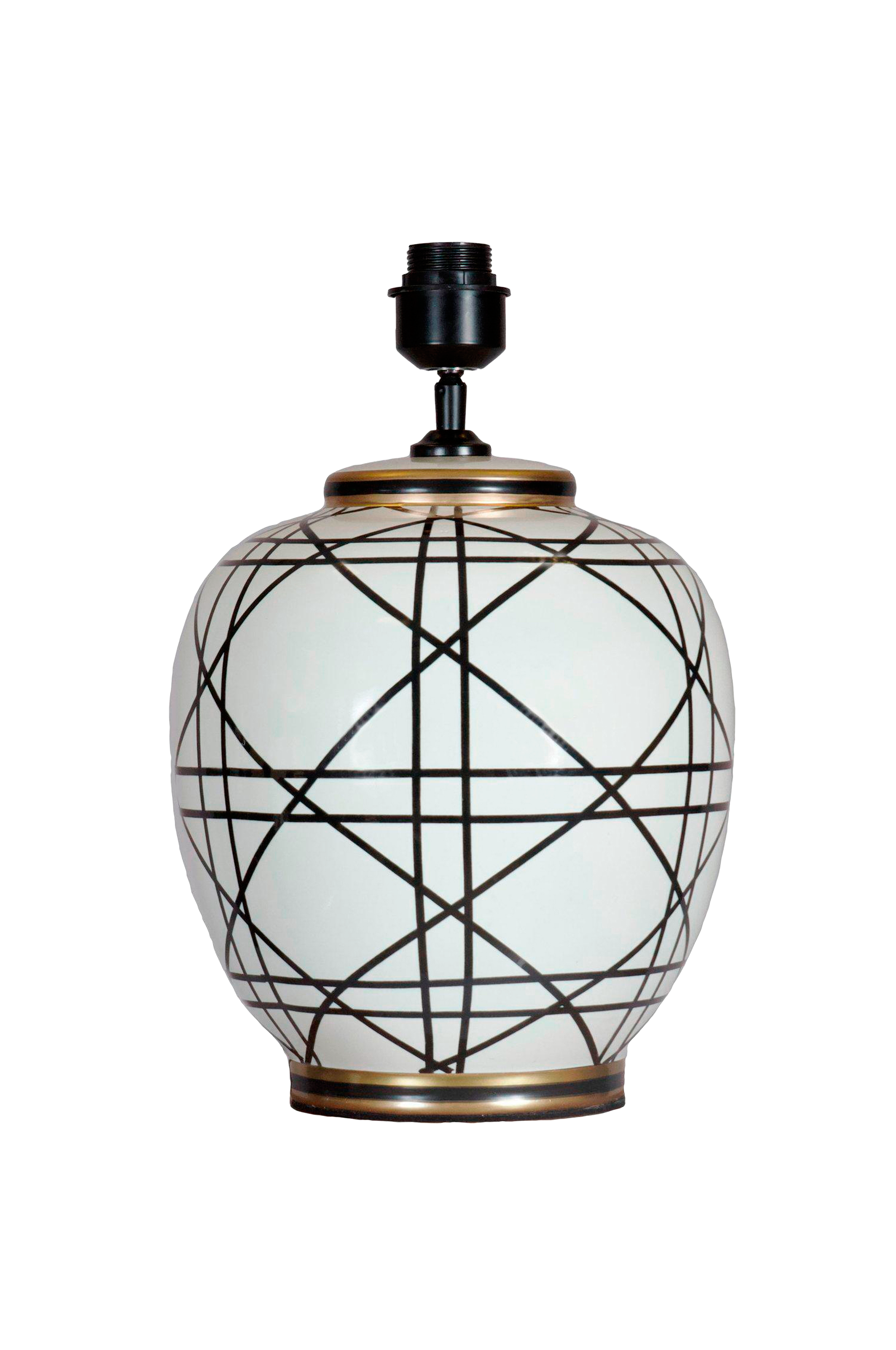 Den här urnformade bordslampan är en riktig statement piece som omedelbart fångar blicken. Med en djärv keramisk bas prydd med ett slående grafiskt mönster fungerar den både som ljuskälla och dekorativt konstföremål. Den distinkta silhuetten och den handritade estetiken ger lampan en stark personlighet - perfekt för dig som vill tillföra något djärvt och personligt till din inredning. Lampan mäter 39 cm i höjd och 27 cm i diameter och har en solid, välbalanserad framtoning som gör den perfekt för sidobord, konsoler eller som mittpunkt i en fönsterutställning. Den har en e27-sockel (max 40w) och levereras med en 180 cm lång svart textilkabel. Strömbrytaren är placerad 40 cm från basen för enkel åtkomst, och den har en standard eu-kontakt. Ljuskällan säljs separat. Den här bordslampan i keramik är mer än bara funktionell - den är ett designuttryck. En perfekt kombination av grafisk kant och klassisk form som lyfter alla utrymmen.