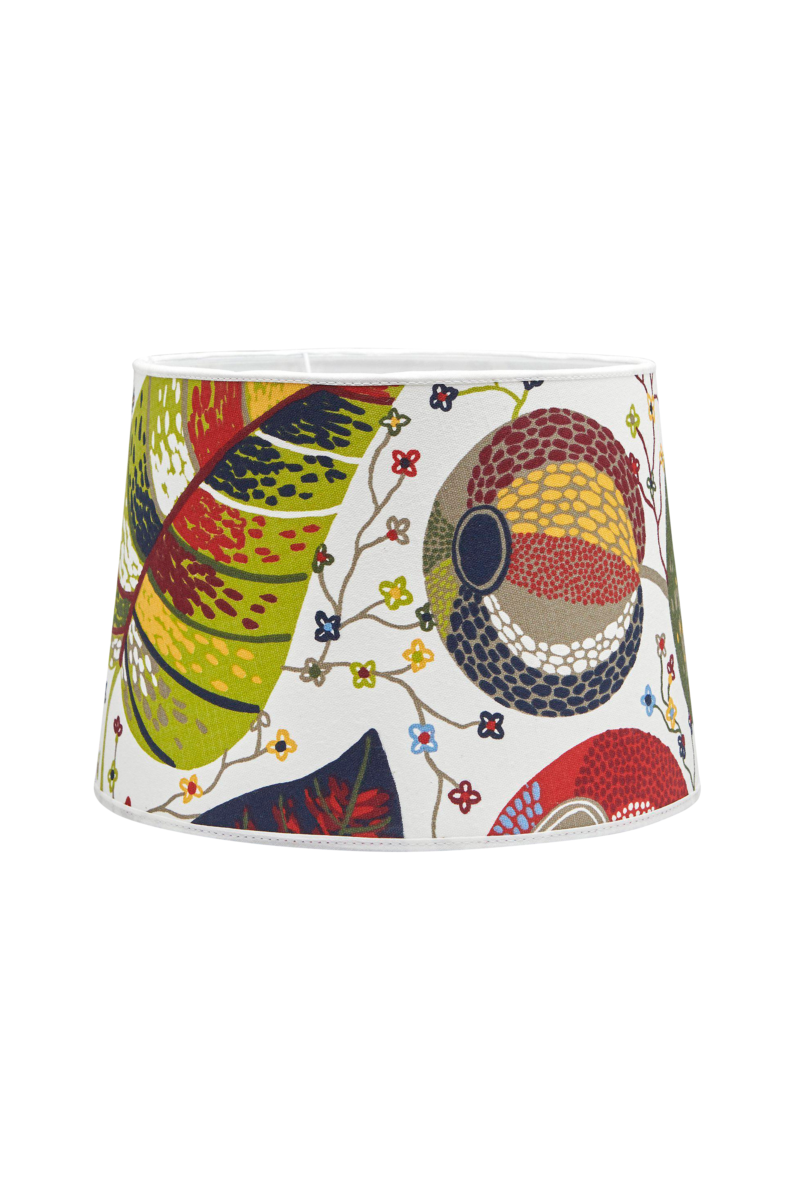 Lampskärm Sofia i ett bomullstyg med härligt mönster. Finns i flera olika färger och storlekar. Lampskärmen är rund och försedd med E27 ringfäste. Höjd 29 cm, bredd nertill 40 cm, bredd upptill 35 cm.