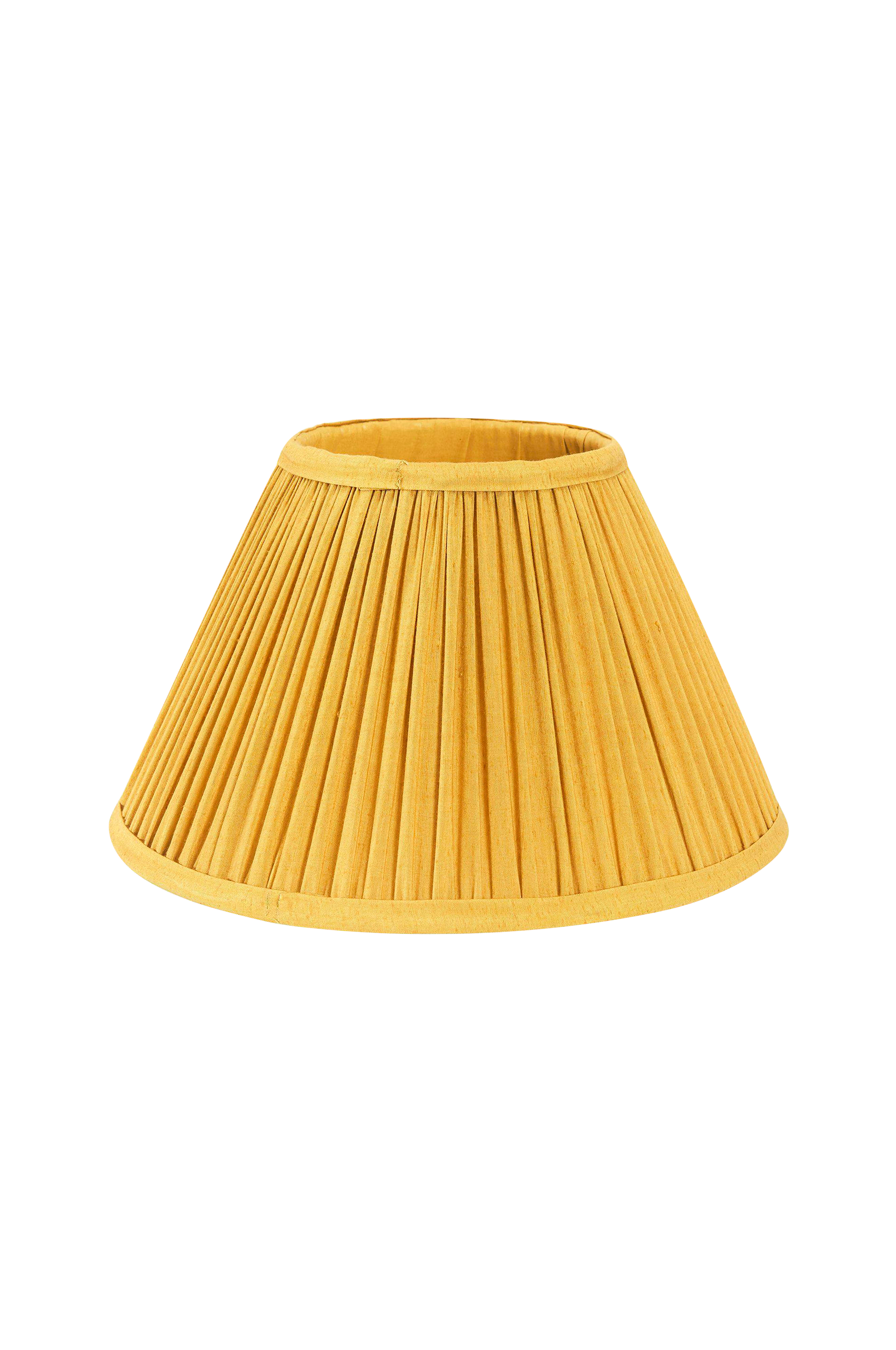 Stella lampskärm i rynkad sidenlook fodrad med bomullstyg i samma färg. En klassisk modell som är lika läcker på en trendig lampfot som på en klassisk bordslampa. Lampskärmen är konformad och försedd med ett E27-ringfäste som sitter ca 2,5 cm från nederkant på skärmen. Höjd 20 cm, bredd nertill 35 cm, bredd upptill 16 cm.