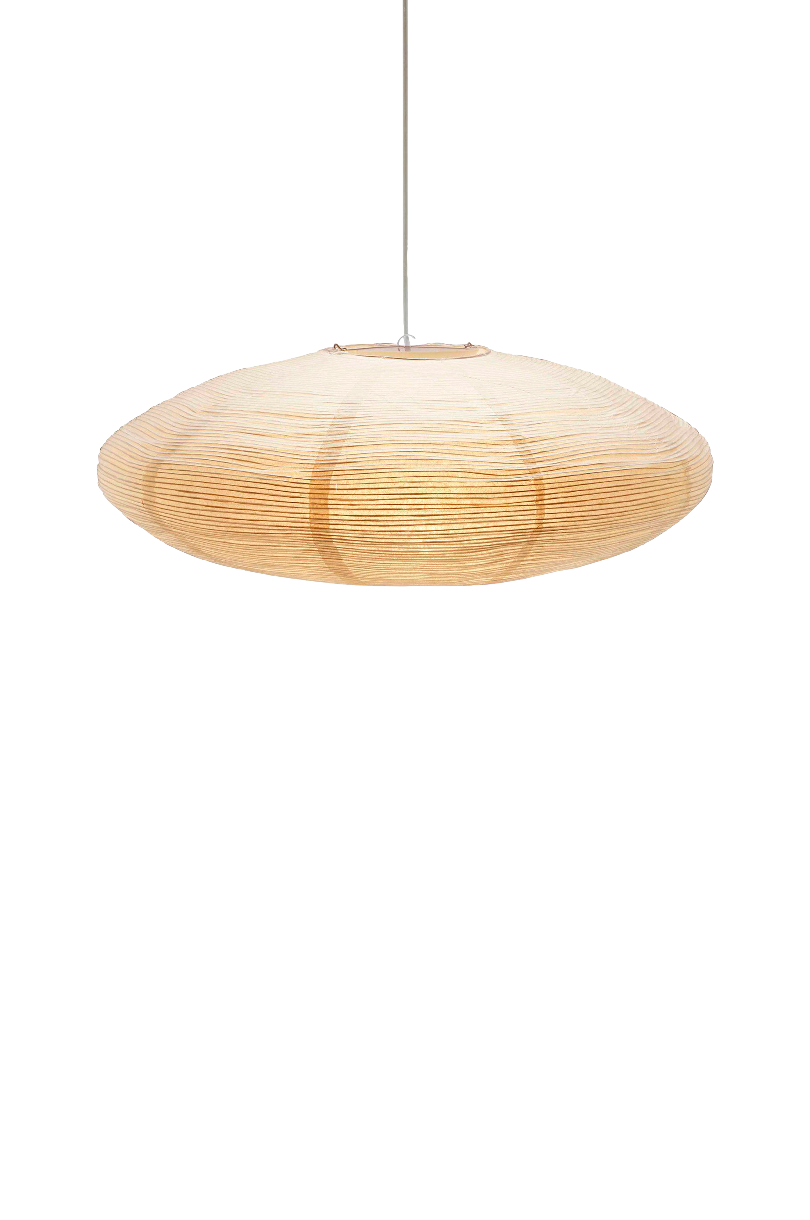Rispappersskärm yuni med oregelbunden tät ståltråd som skapar ett vackert mönster. Yuni är ellipsformad 58 cm i diameter och 23 cm hög. Utan sladd. Expandera lampan med en expander i stål som även håller sladden.