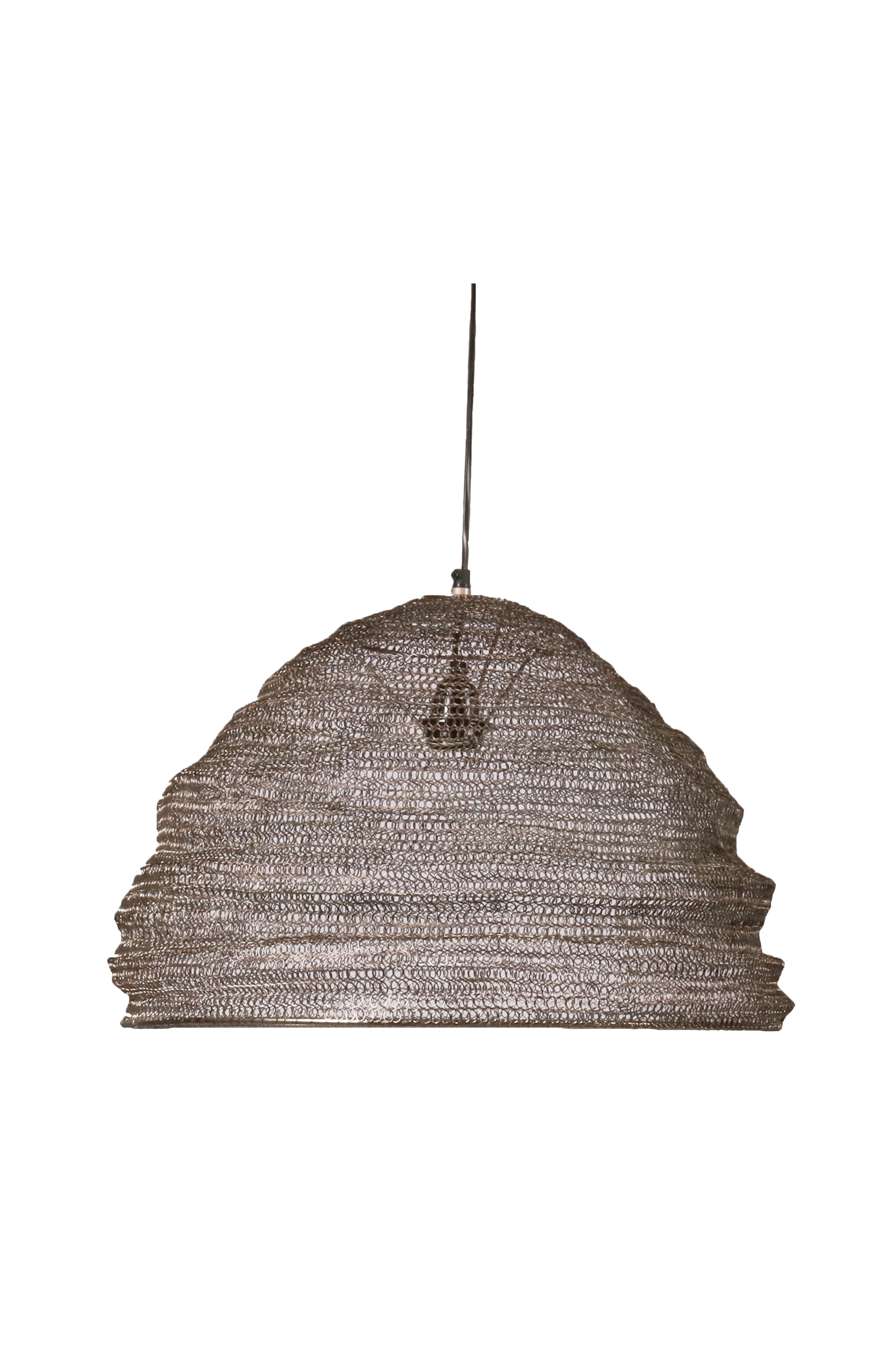Industriell känsla med Kimberley taklampa i metallnät. Handgjord lampa med 1,2 m sladd och takkopp i metall. Höjd 36 cm, Ø 52 cm. Sockel E27. Max 25 W. För krokupphäng. Matcha med en globformad ljuskälla 95 mm i valfri färg.Takkontakt ingår ej på grund av nytt EU direktiv. De finns att beställa separat.