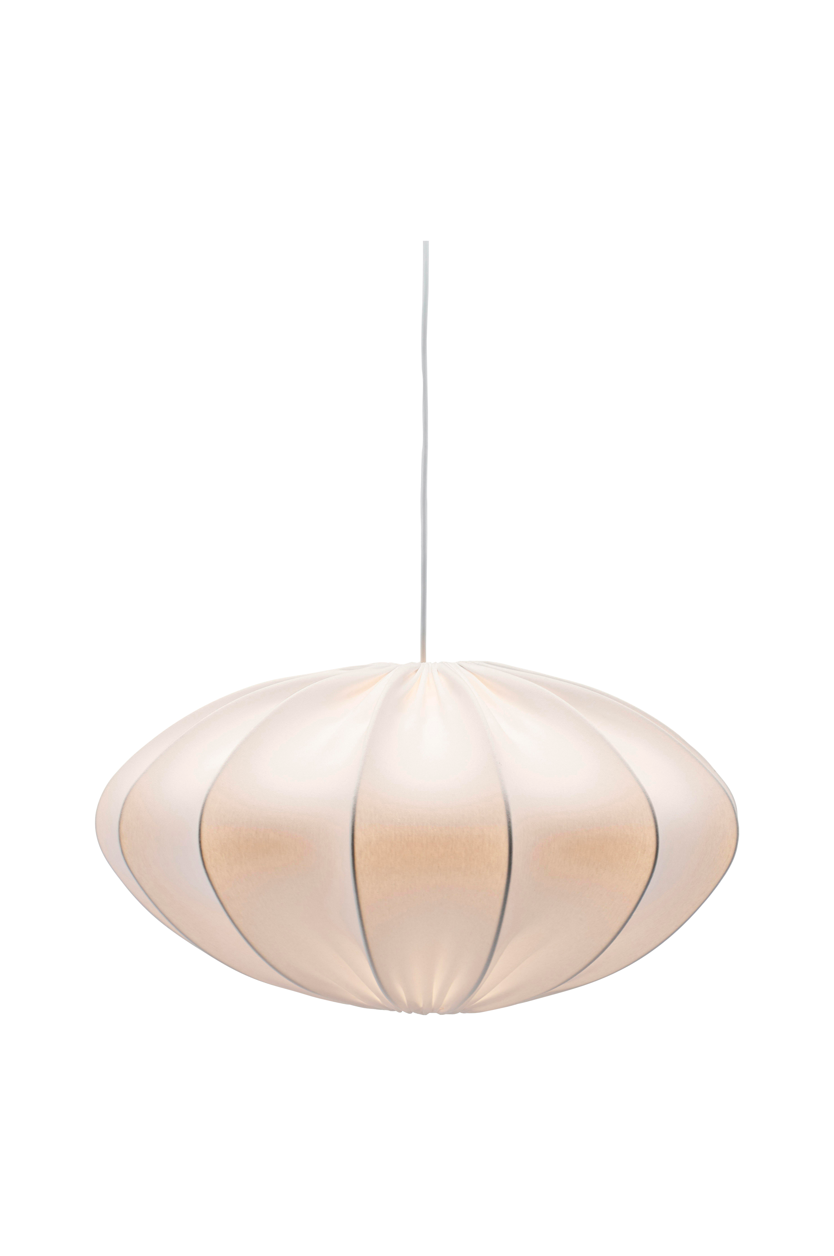 Rosa Pendelskärmen är en del av en familj av skärmar klädda i vitt jerseytyg. Skärmens diameter är 60 cm och höjden är 31 cm. E27 ringlamphållare är placerad 6cm från toppen av skärmen. Sladdsetet köps separat.