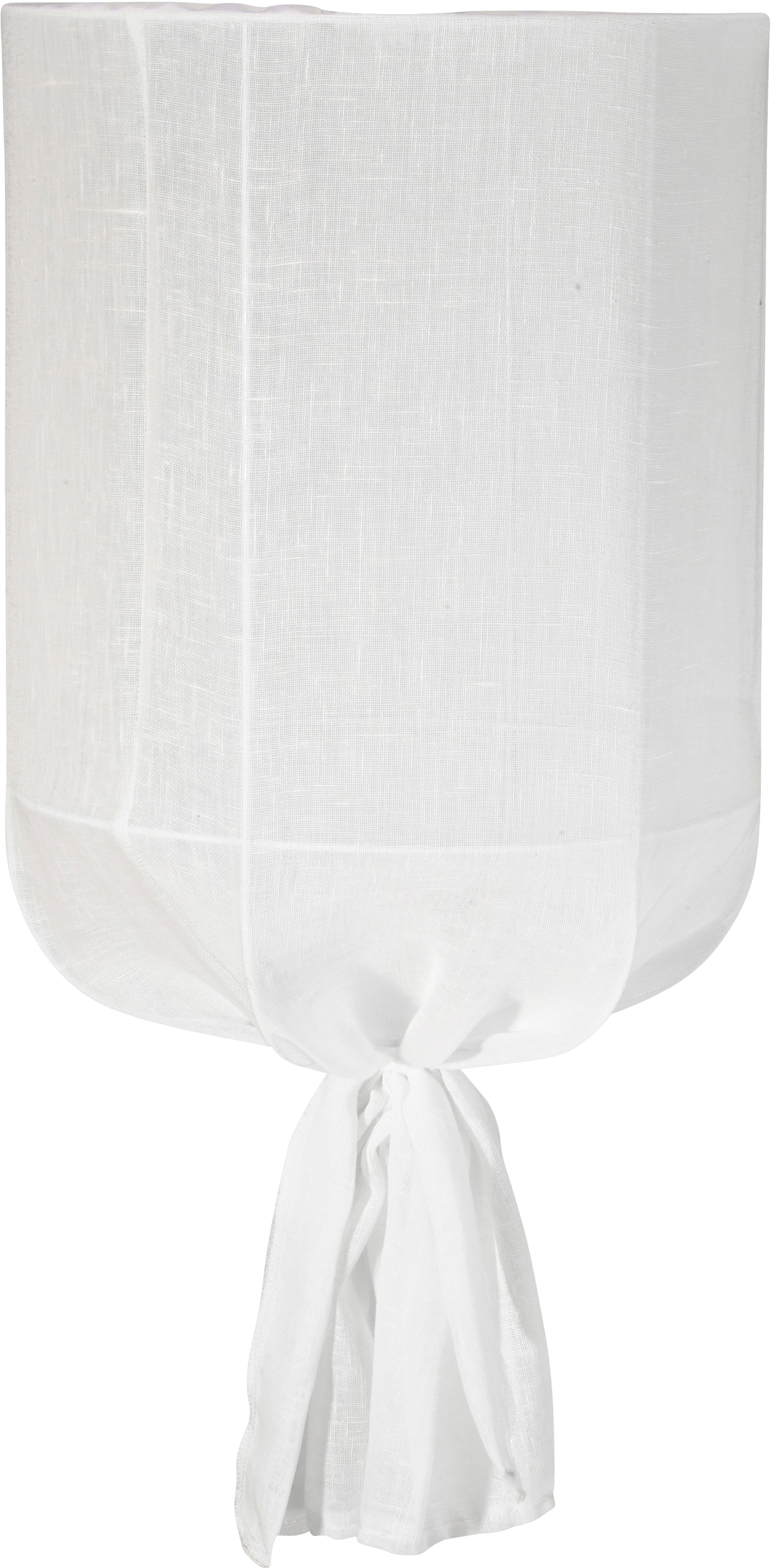Taklampa i tyg. Rund, diameter 30 cm, total höjd 60 cm inklusive nedhängande knyt. Inklusive vit sladd, längd 1,2 m. Takkopp i vit plast. E27. Max 60W.