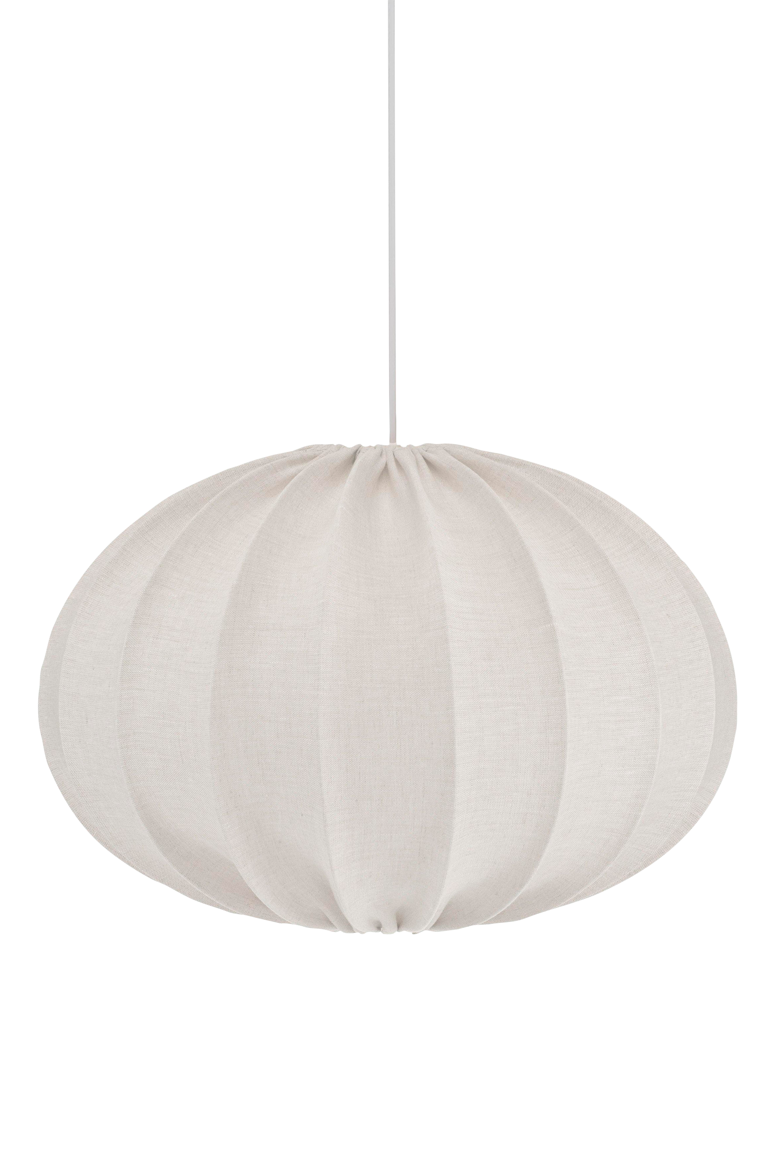 Hilma takskärm i ett ribbat jerseytyg. Den ribbstickade strukturen ger ett vackert sken när lampan är tänd. Använd gärna en opal ljuskälla som gör att ljuset flödar fint i hela skärmen. Komplettera med taksladd, takkontakt och ljuskälla E27 som köpes separat.