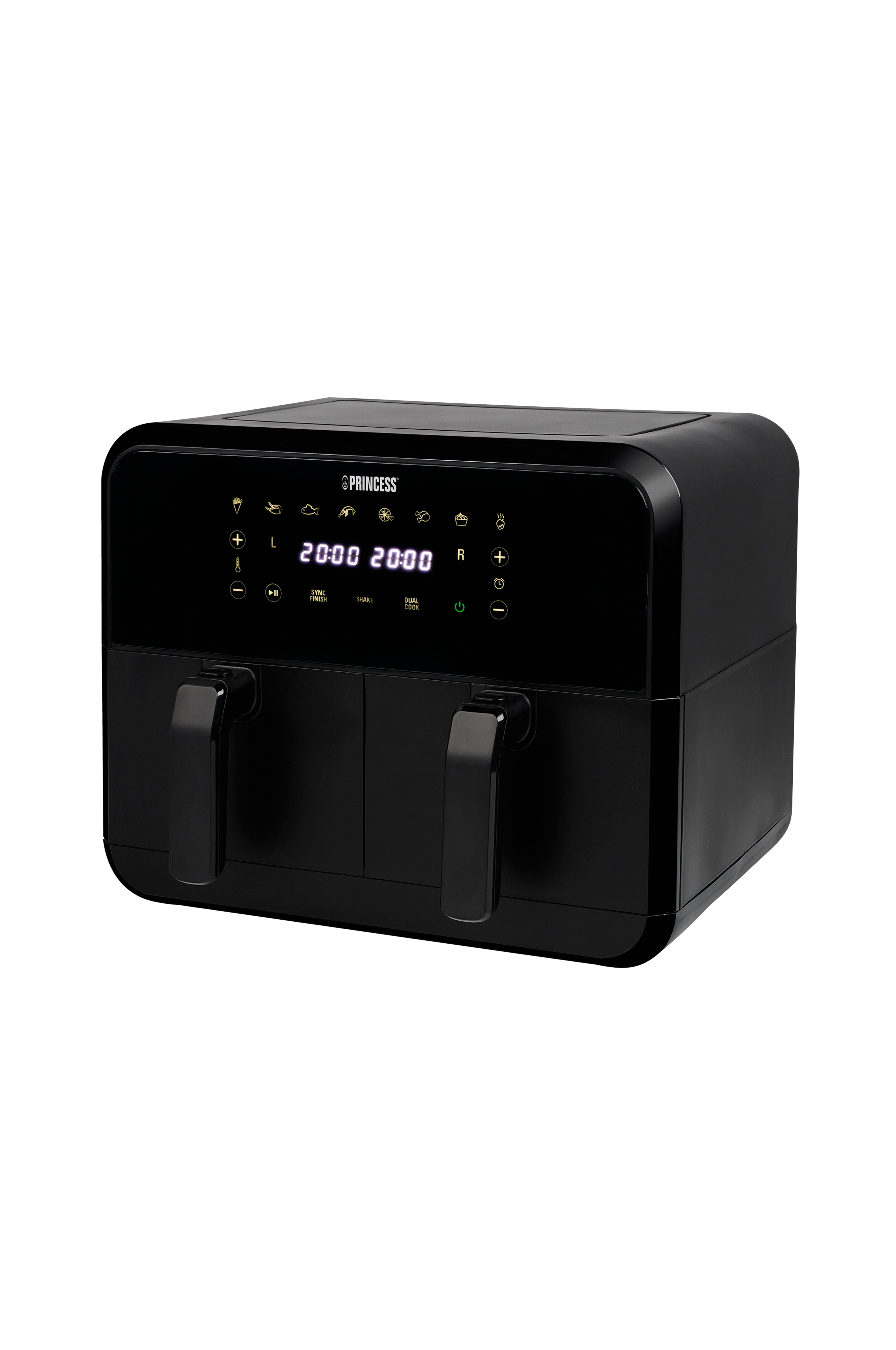 Digital luftfritös med dubbla korgar – du kan göra två rätter samtidigt.