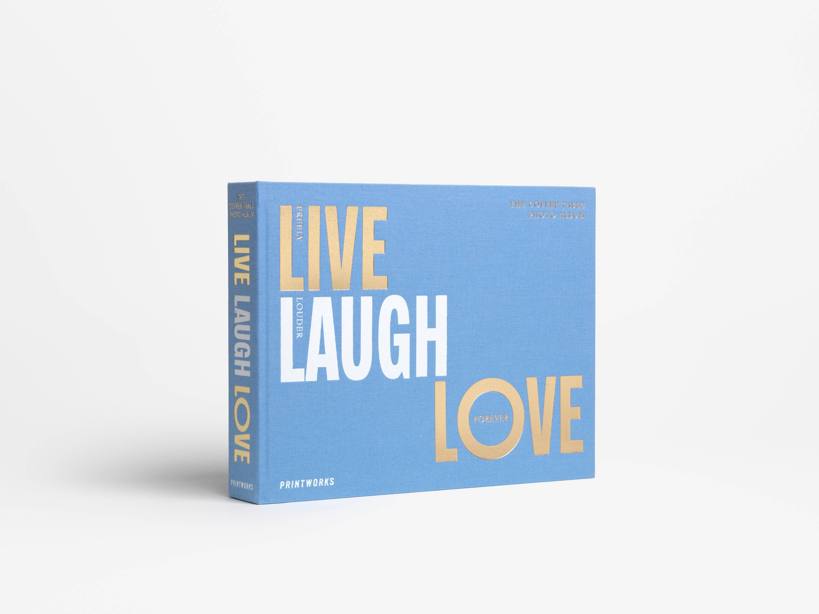 Upptäck vårt fotoalbum "live, laugh, love" i lugnande blått med djärv typografi i guld och vitt. Designat för att fira de ögonblick som gör livet ljusare. Detta album i liggande format rymmer 30 sidor med 21x28 cm vitt fotopapper av högsta kvalitet. Ett fint föremål för att bevara dina lyckligaste minnen, perfekt placerat på soffbordet för att ge värme och färg till ditt hem.