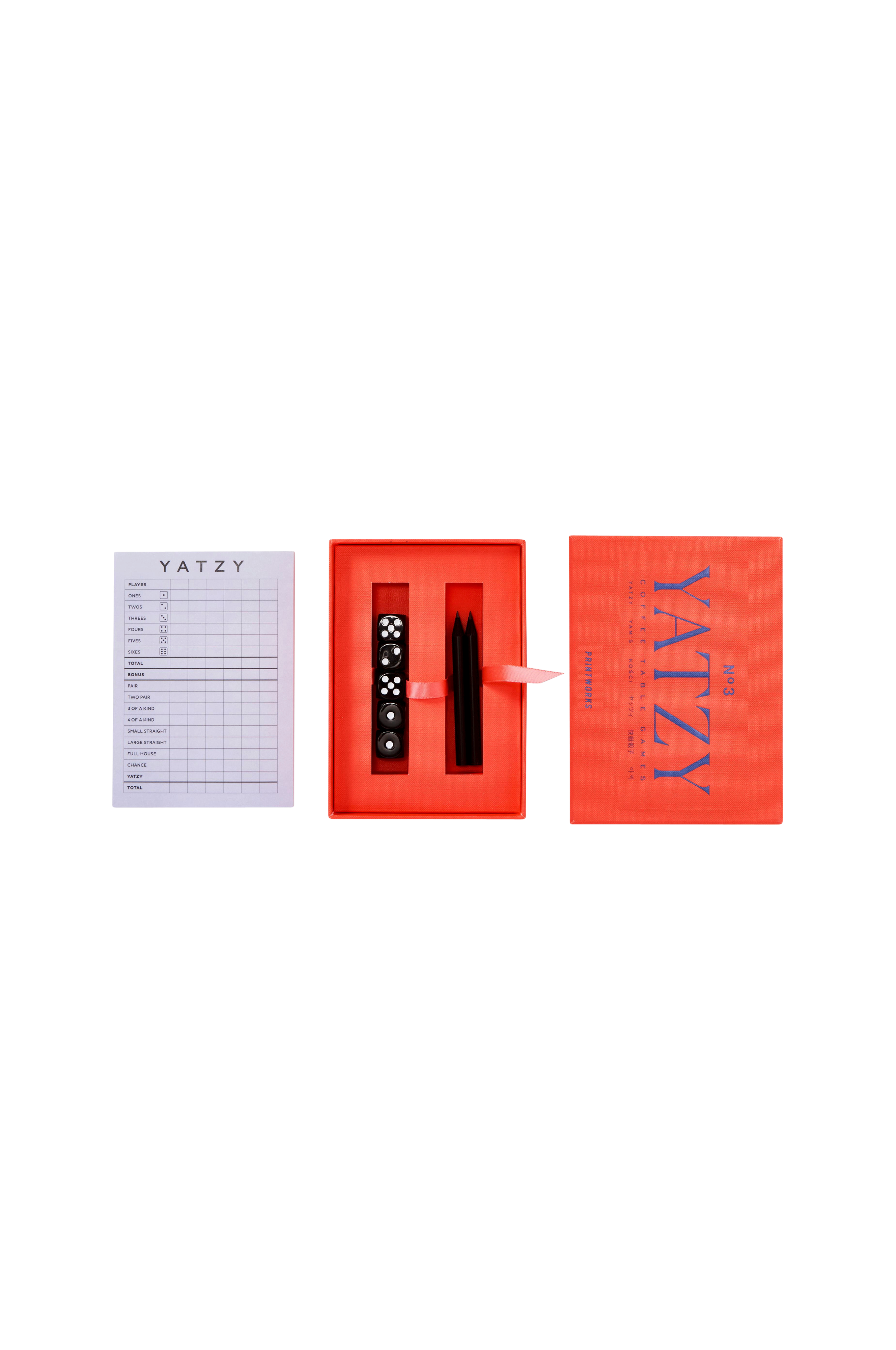 Upptäck en modern twist på ditt älskade spel, yatzy, där design möter underhållning. Vår yatzy-klassiker innehåller fem svarta tärningar, två svarta pennor och ett 50-sidigt scorekort. Det har lättlästa instruktioner på engelska, franska och tyska och är lämpligt för upp till 6 spelare, åldrarna 4+. Ta steget in i de klassiska brädspelens värld med vår exklusiva serie Classic Game. Med en ren, minimalistisk design översatt till levande färger kommer de att lyfta din heminredning var du än placerar dem. Oavsett om de spelas eller visas upp kommer de garanterat att vinna.