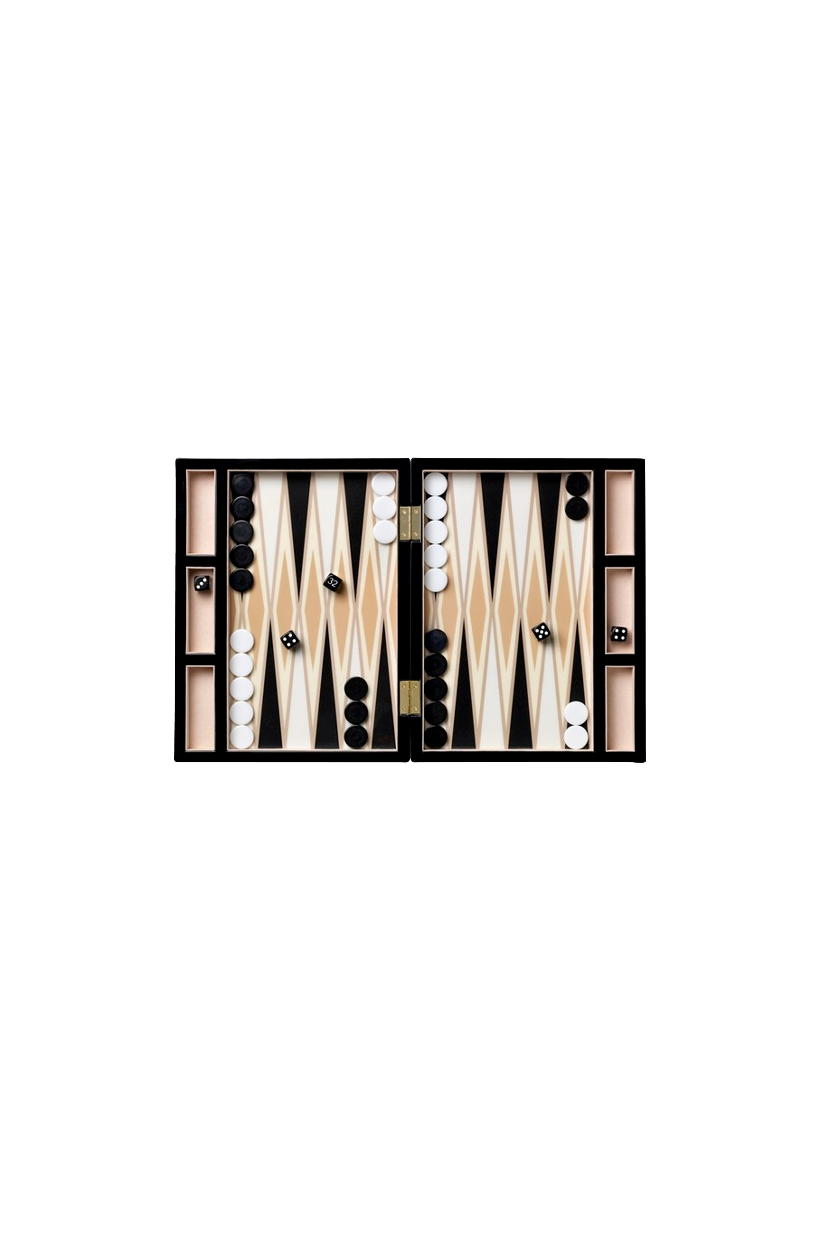 Upptäck det lackerade backgammon-setet med ett slående eklektiskt mönster i svart, vitt och krämfärgat. Denna djärva utgåva kombinerar tidlös spelupplevelse med uttrycksfull design, med ett stort träbräde och glansiga akrylpjäser. Både ett spel och ett statement-föremål som tillför karaktär oavsett om det används eller bara står framme.