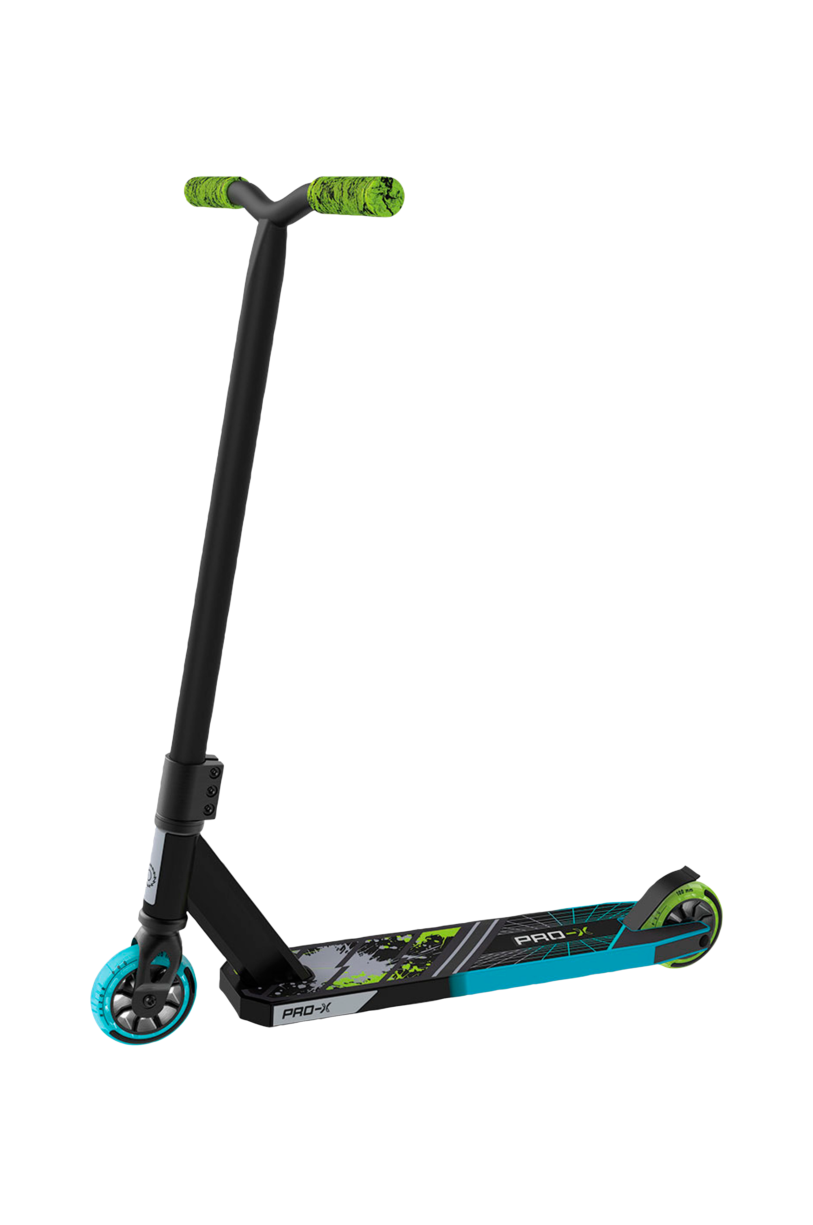 Tillverkad i stark aluminium men som ger låg vikt, stabil ram, supersnabba 100 mm uretanhjul, bakhjulsbroms och strömlinjeformat Y-styre som är monterat med 3-bultad klämma.