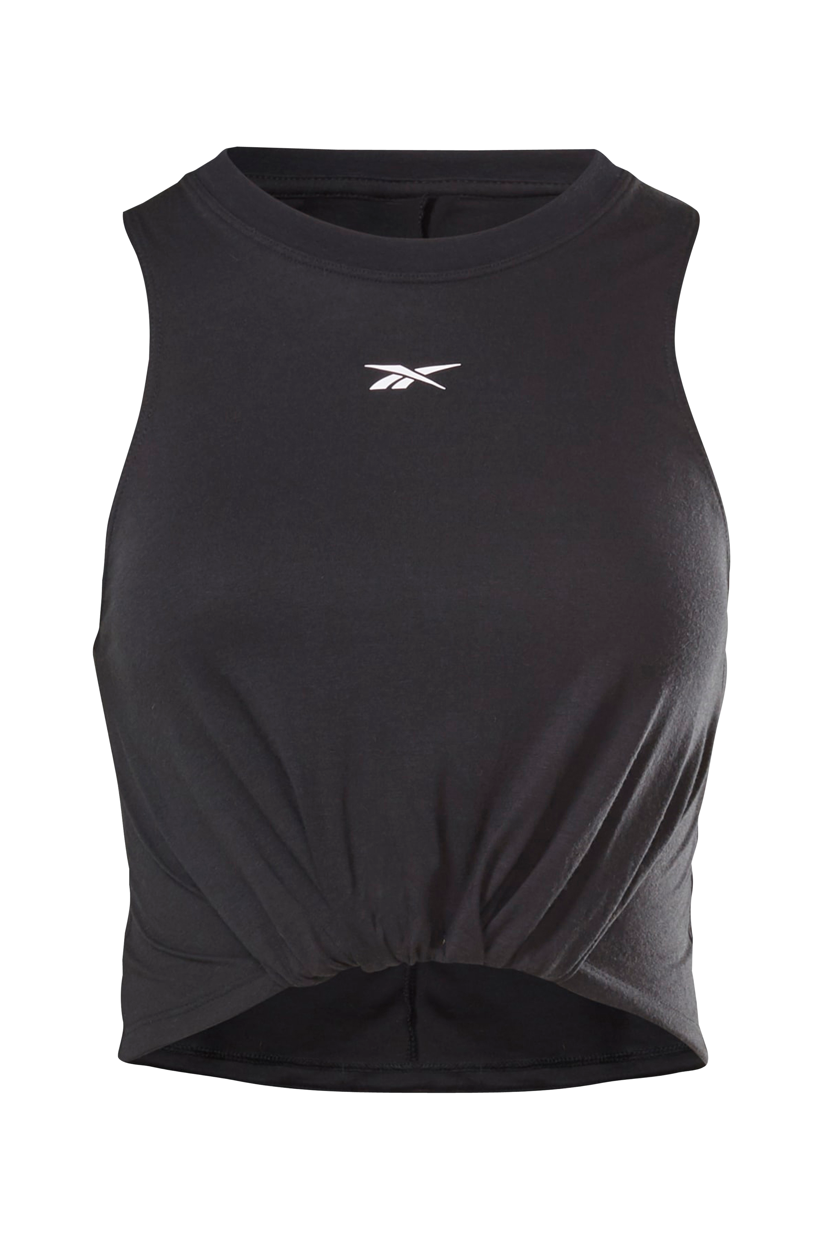 Ärmlös, croppad träningstopp med smal passform. Resår i nederkanten och knytdetalj nedtill fram.
