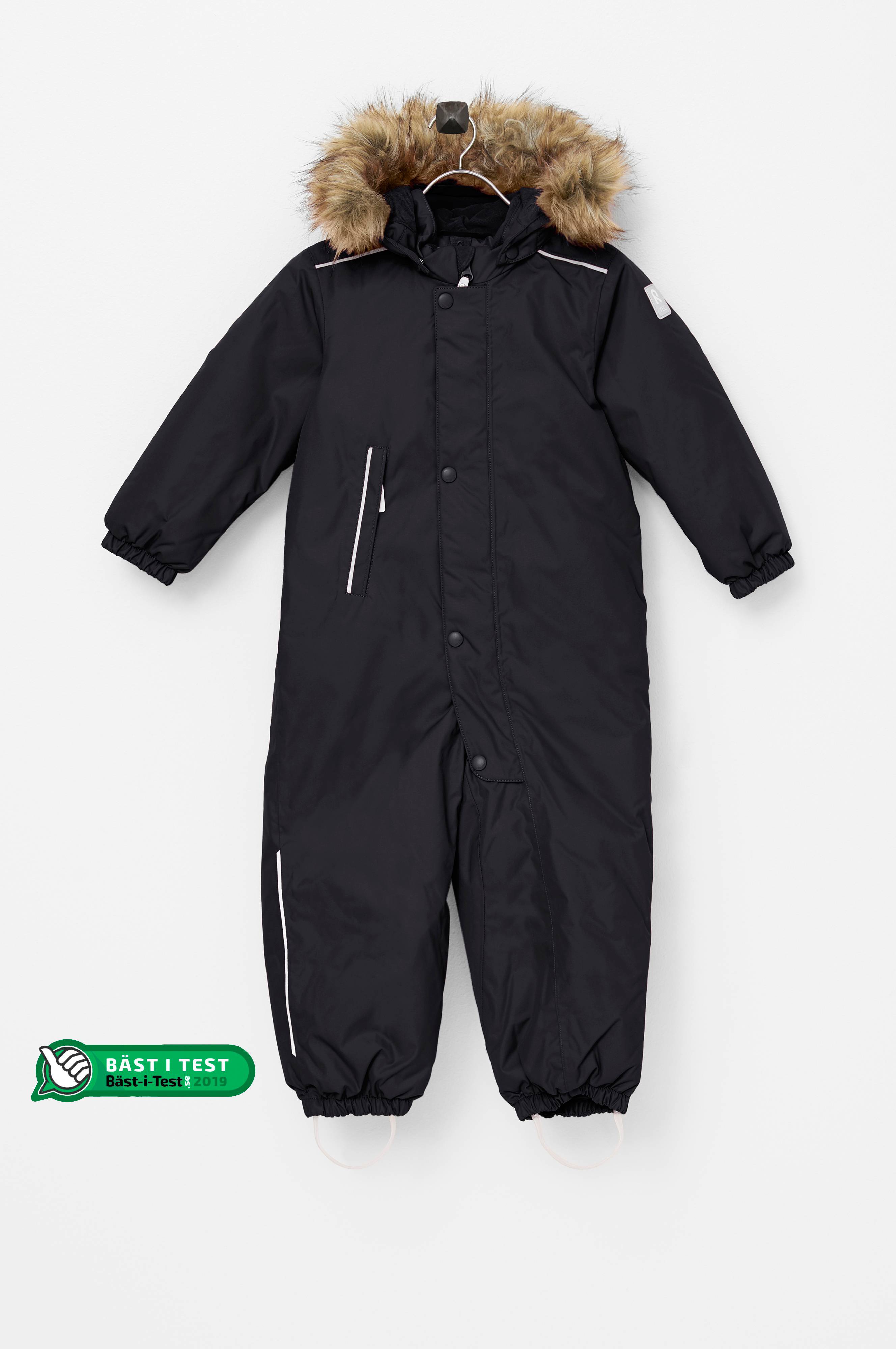 Den mjukt fodrade huvan är justerbar och har en avtagbar fuskpälskant. Huvan är fäst med tryckknappar och är säker vid aktiva utelekar genom att den lossnar om den skulle råka fastna. Overallen stängs med dragkedja som har skavskydd vid hakan och en skyddande vindslå med tryckknappar. Overallen har extra isolering över rumpan, perfekt för lekar i snön. Det mjuka fodret i polyester underlättar påklädningen och är också perfekt vid användning av varma mellanplagg. Med Play Layers®-tryckknappar kan du enkelt fästa ett värmande mellanplagg från Reima® i overallen. Infälld resår i ärm- och benslut. Elastiska och avtagbara fothällor i silikon. En ficka med skyddad dragkedja. Reflexdetaljer fram, bak och på huvan.