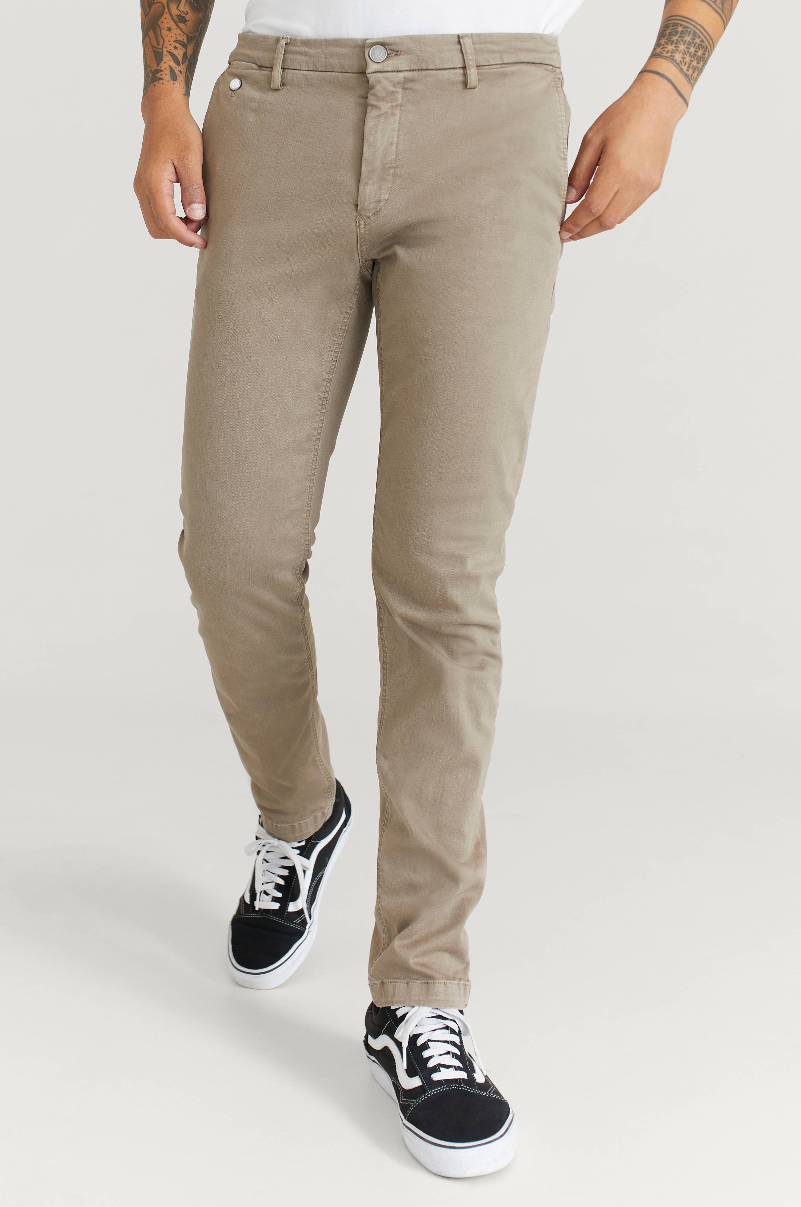 Chinos i stretchigt, lätt tyg. Regular fit. Linning med hällor, knapp och gylf med dragkedja. Fickor i sidorna, en liten myntficka fram med tryckknapp och två infällda bakfickor.