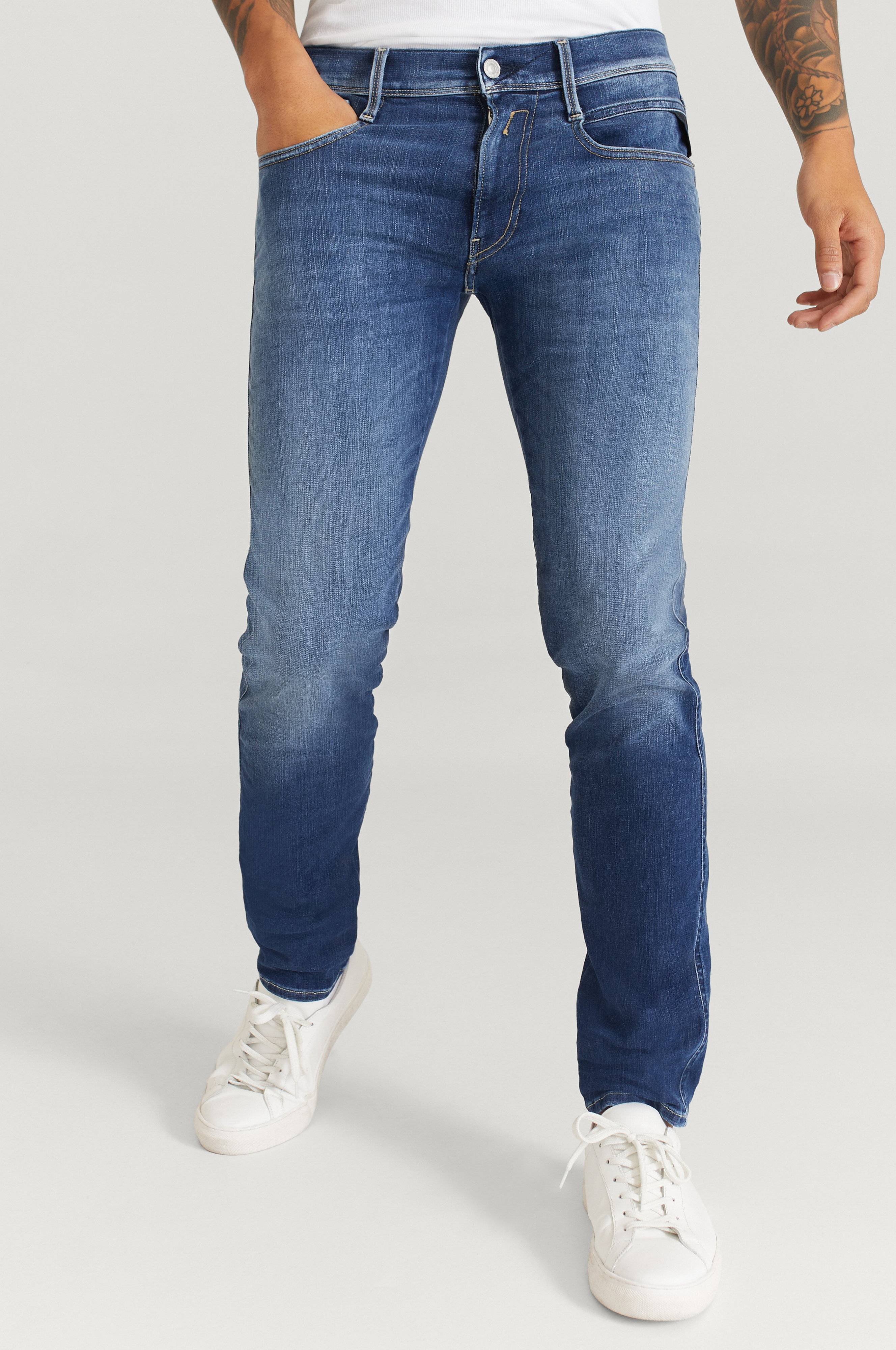 Jeans från Replay som har en normal midja med en avsmalnande passform från knät ner till fot. Dragkedjegylf och fem fickor. Stretchkvalitet.