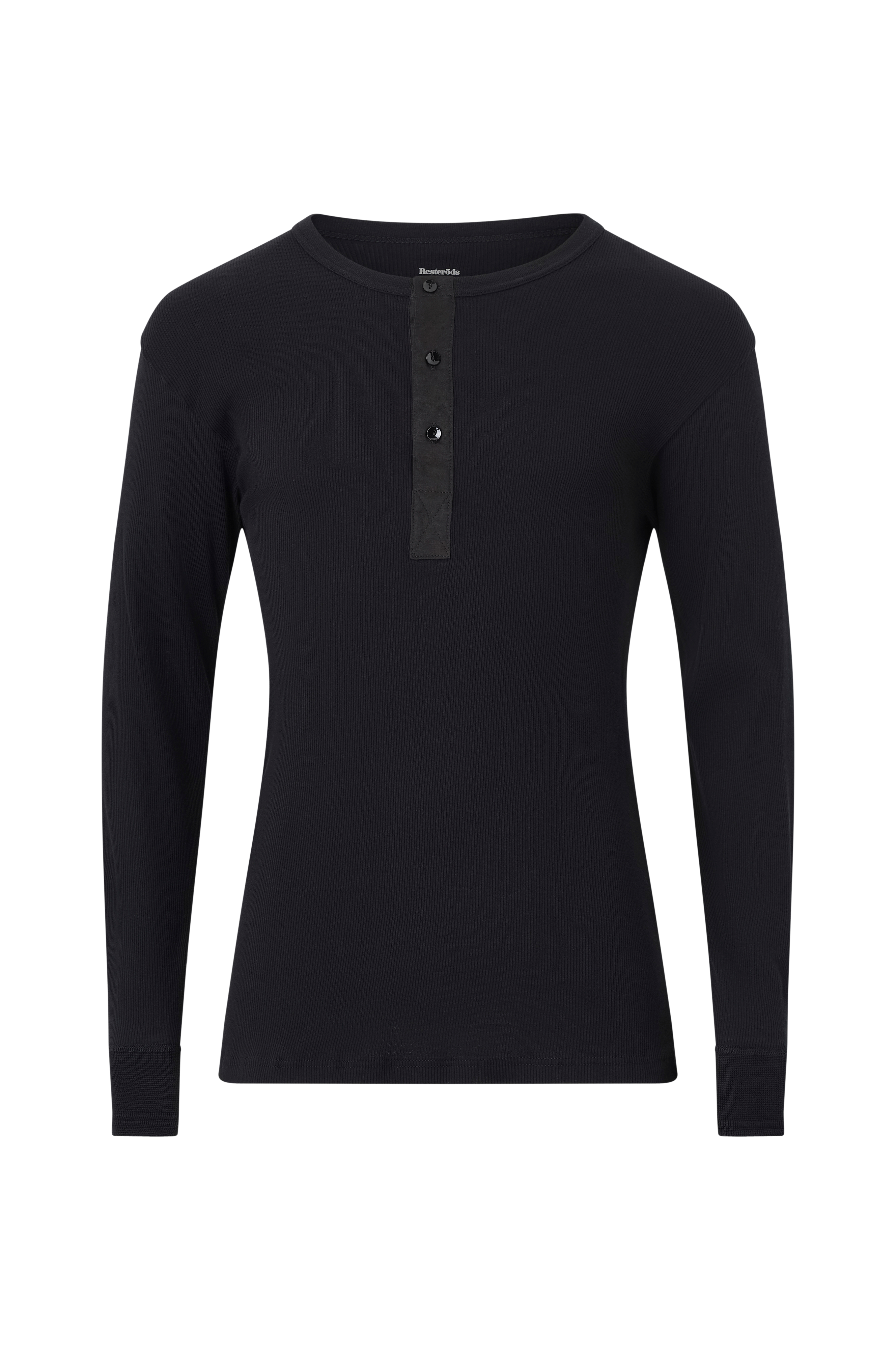 • Långärmad, ribbad t-shirt i bomull• Rund halsringning med kort knappslå• Muddar i ärmsluten