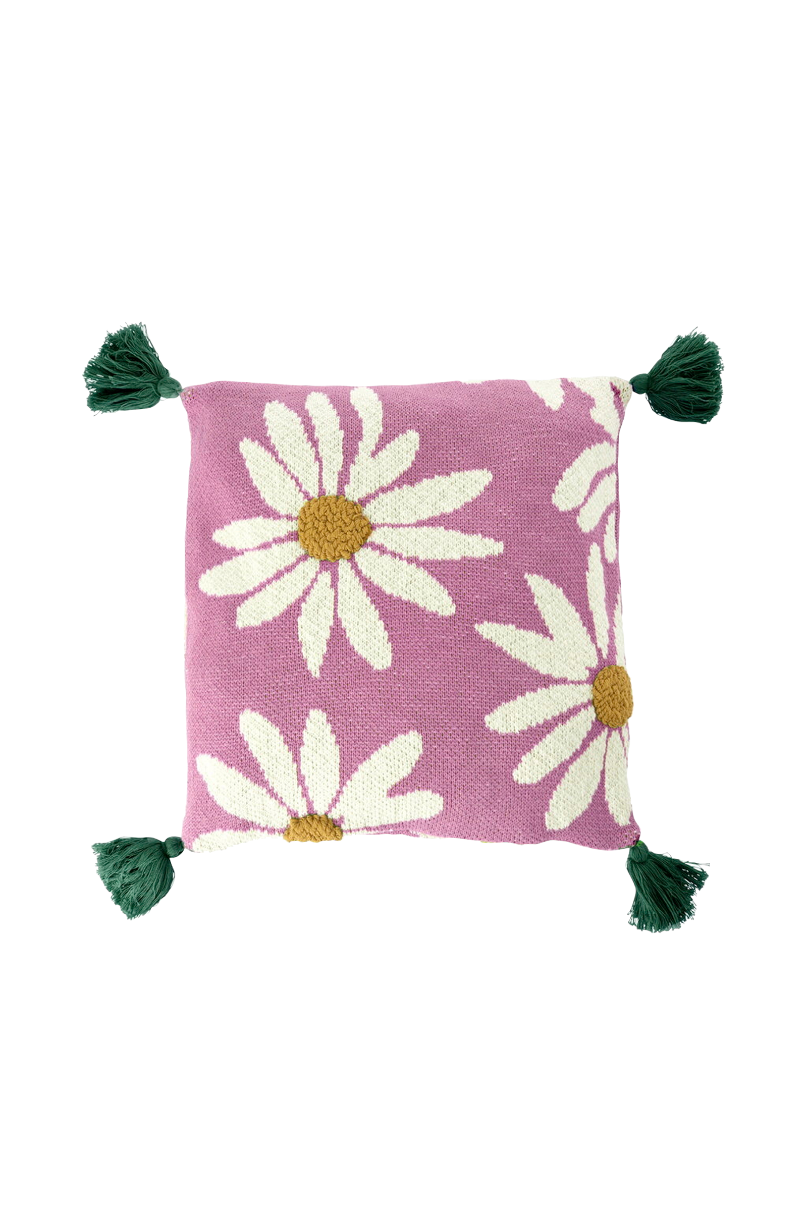 Vacker kudde i bomull med stickad blomdesign och roliga tofsar. För en touch av vardagsmagi placera den på terrassen eller helt enkelt i soffan i vardagsrummet. En färgglad kudde som denna skapar en härlig atmosfär. Rengörs endast med fläckrengöring. Kudden mäter L40 x B40 cm.