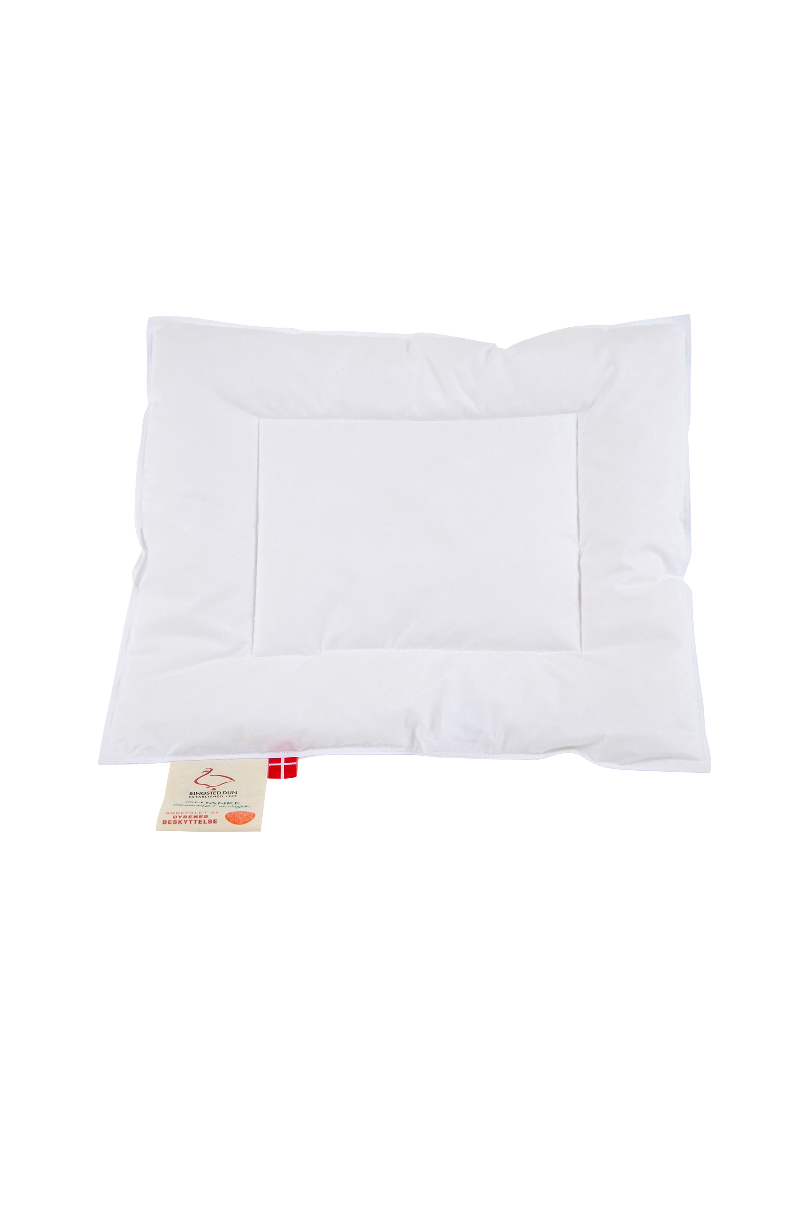Dunet kommer från danska ekologiska och frigående änder och yttertyget är framtaget av mjuk, ekologisk och GOTS-certifierad bomull.