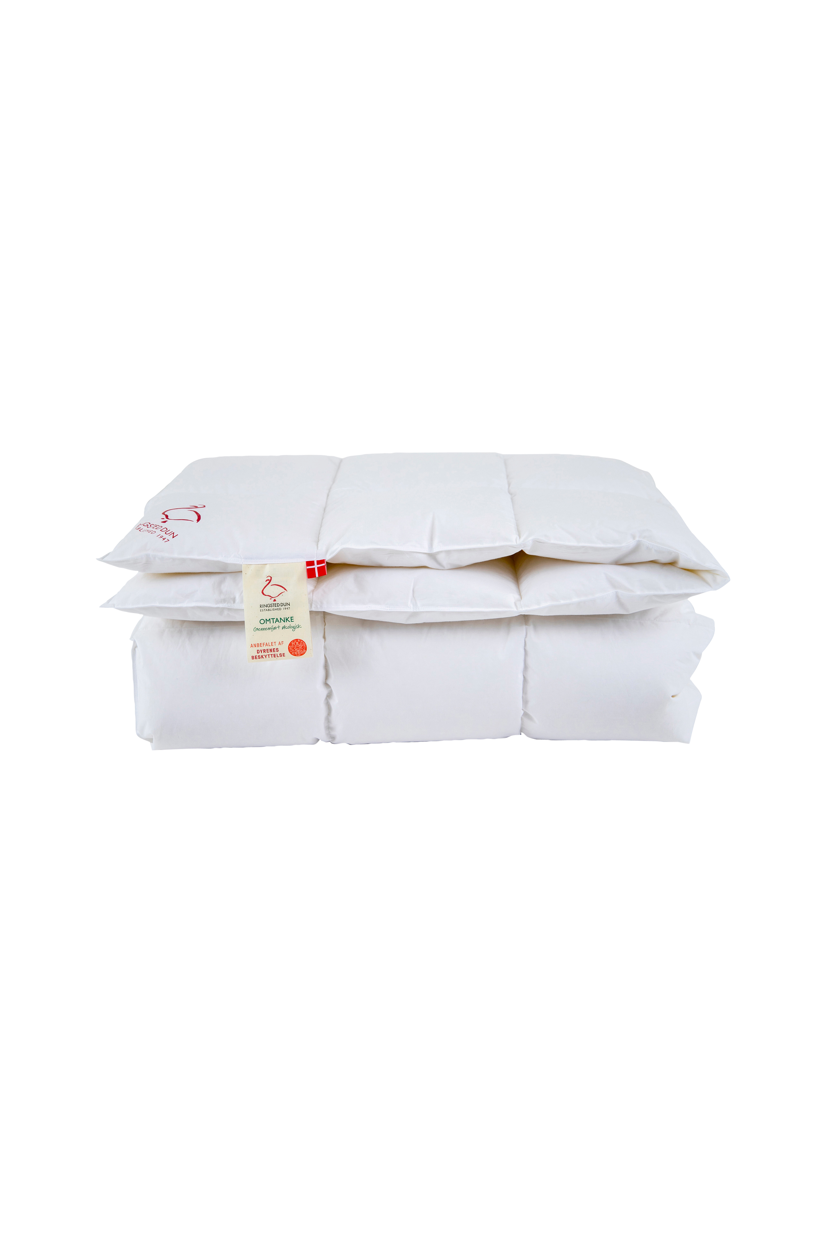 OMTANKE är de första duntäckena och kuddarna som är ekologiska in i minsta detalj, Svanenmärkta och som rekommenderas av den danska djurskyddsföreningen ”Dyrenes Beskyttelse”.
