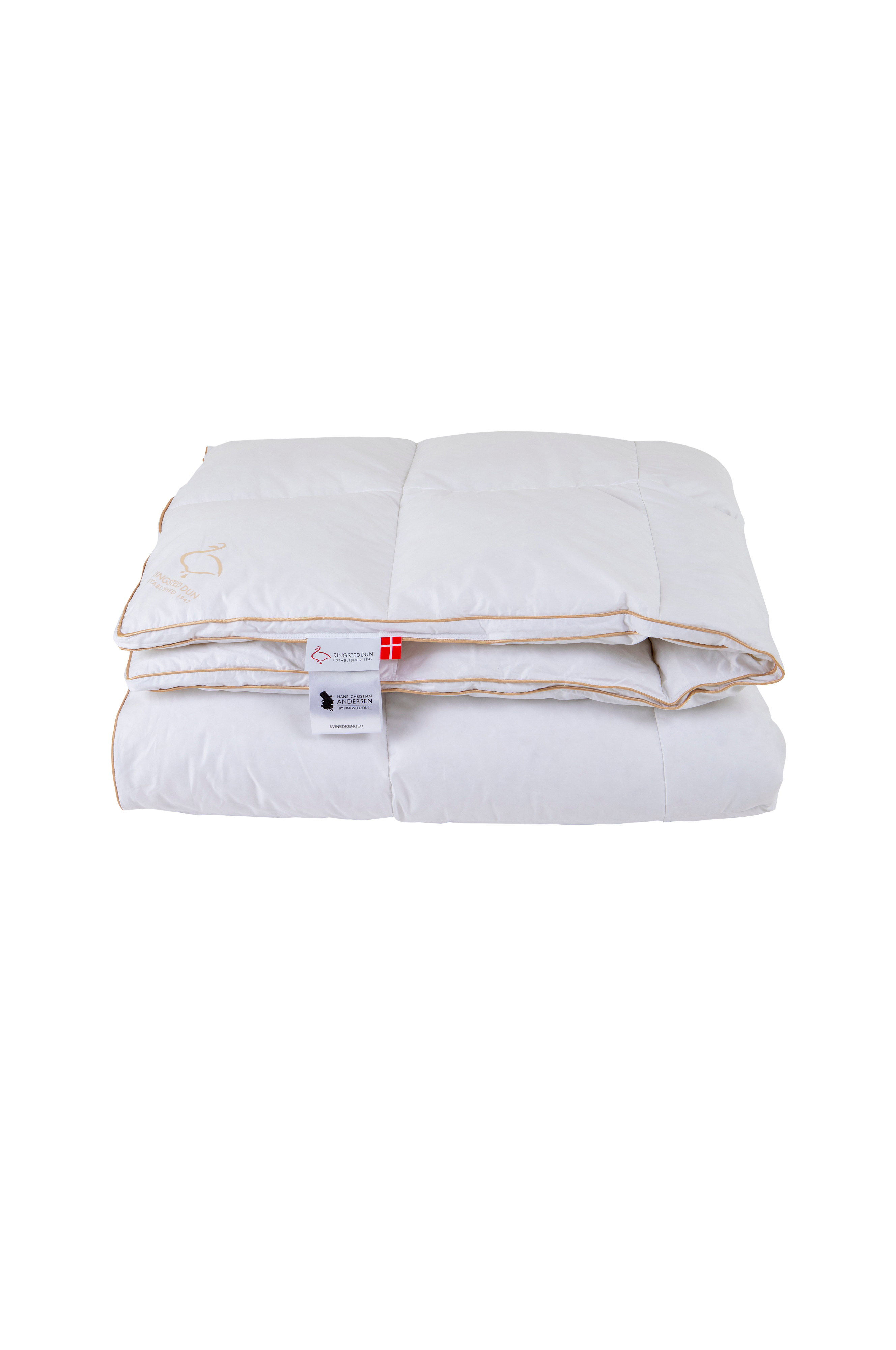 Svinaherden är ett täcke fyllt med luftiga myskanddun med ejderdunsliknande egenskaper, dvs. dunet har det särdraget att de hakar tag i varandra så att de sitter ihop. Tyget har en boxkant som fördelar dunet ända ut till kanten och är vävt i en mjuk och härlig bomullssatin.