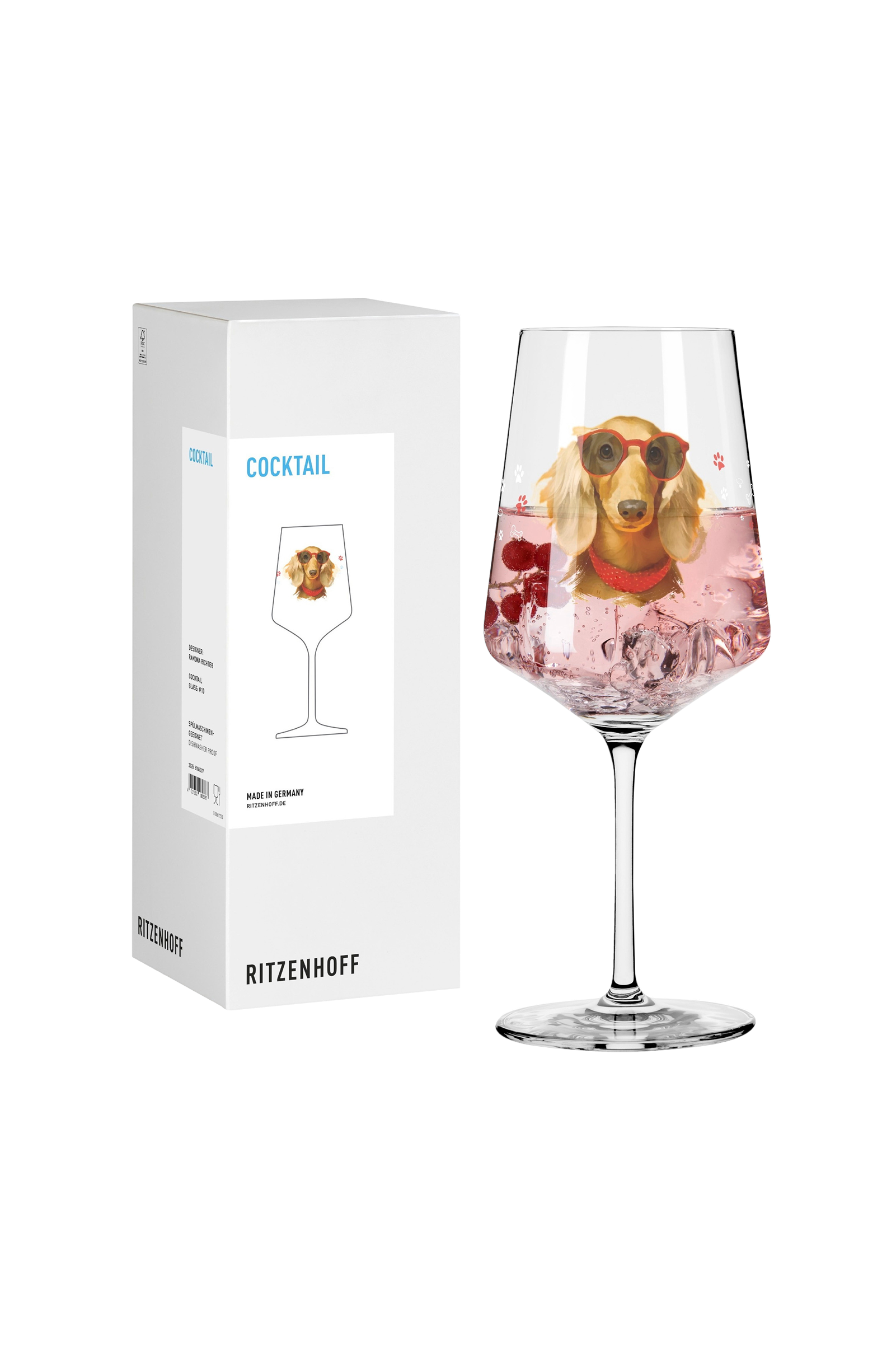 Det här eleganta vinglaset kombinerar charmig design med lekfulla detaljer. Den coola taxen i solglasögon möter ett delikat mönster av tassar och ben. Det här dricksglaset är det perfekta uttrycket för alla som älskar taxar och goda drinkar!