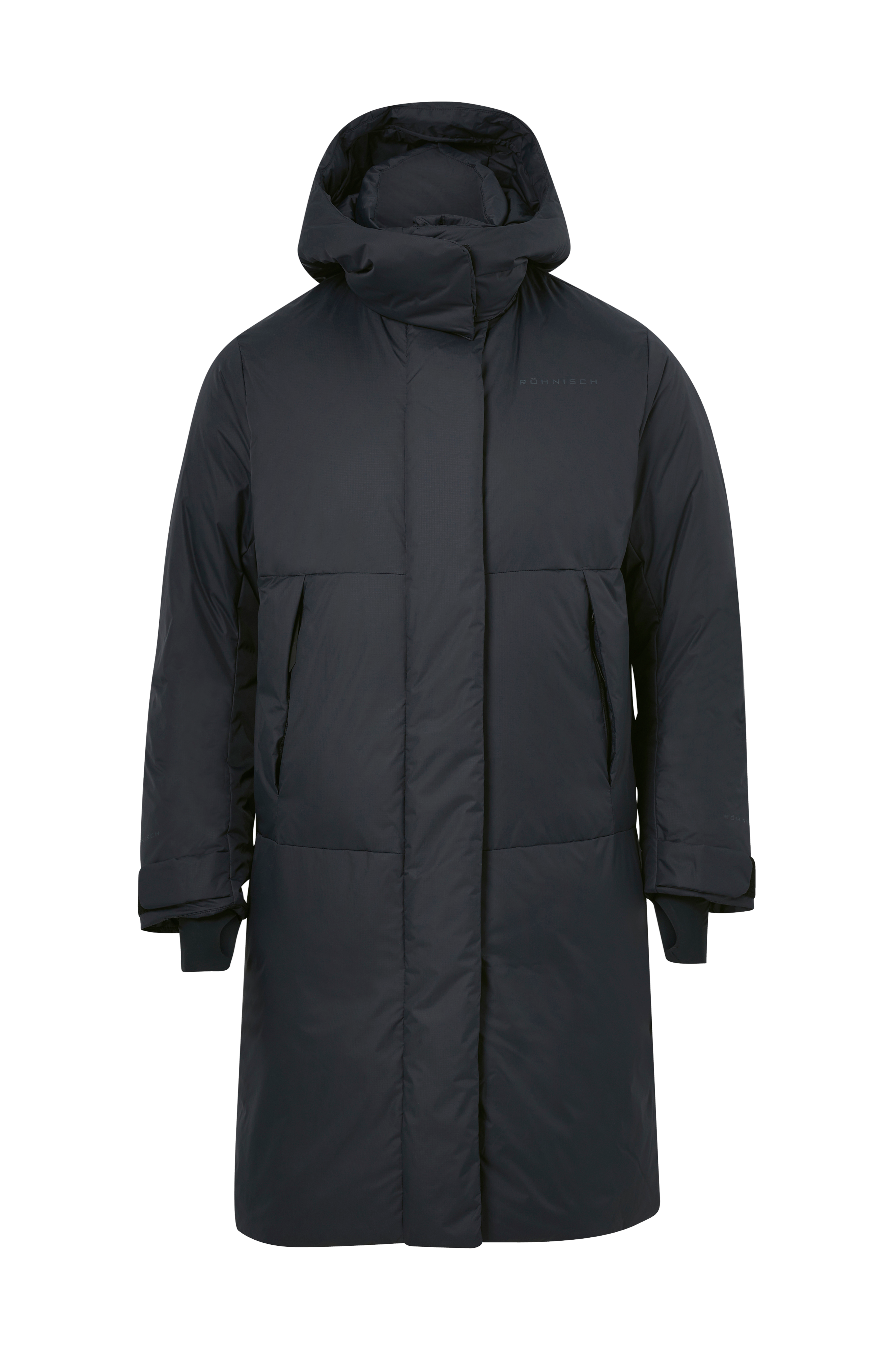 En längre jacka med en värmande, dunlinknande fyllning. Vind- och vattenavvisande yttertyg som håller hela kroppen varm och torr under kalla vinterdagar.