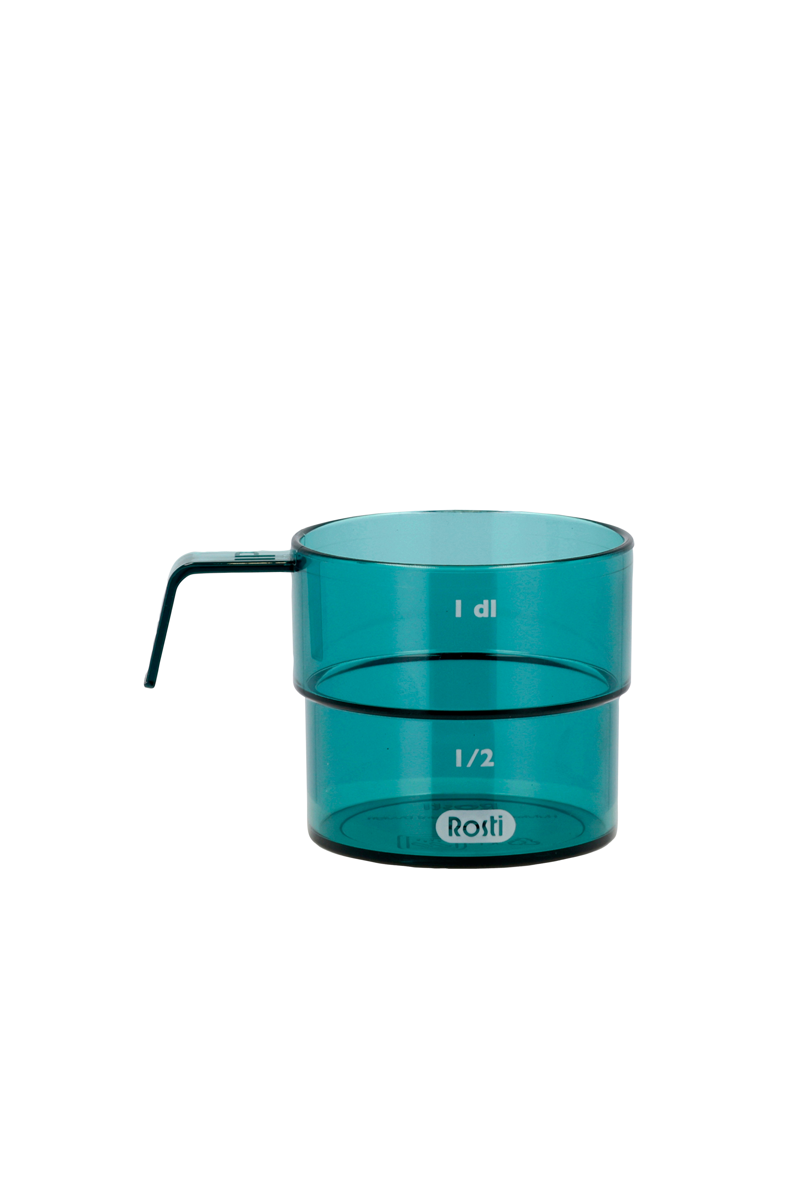 Mensura decilitermått har en distinkt design med en tydlig markering på mitten som anger en halv deciliter. Samma markering i formgivningen gör att det är enkelt att stapla flera mätbägare på varandra. Handtaget ger ett bra och säkert grepp. Tillverkad i SAN, som är mycket transparent och kännetecknas av hög kvalitet och hållbarhet. Mått 8,5x5,8x5,1 cm.