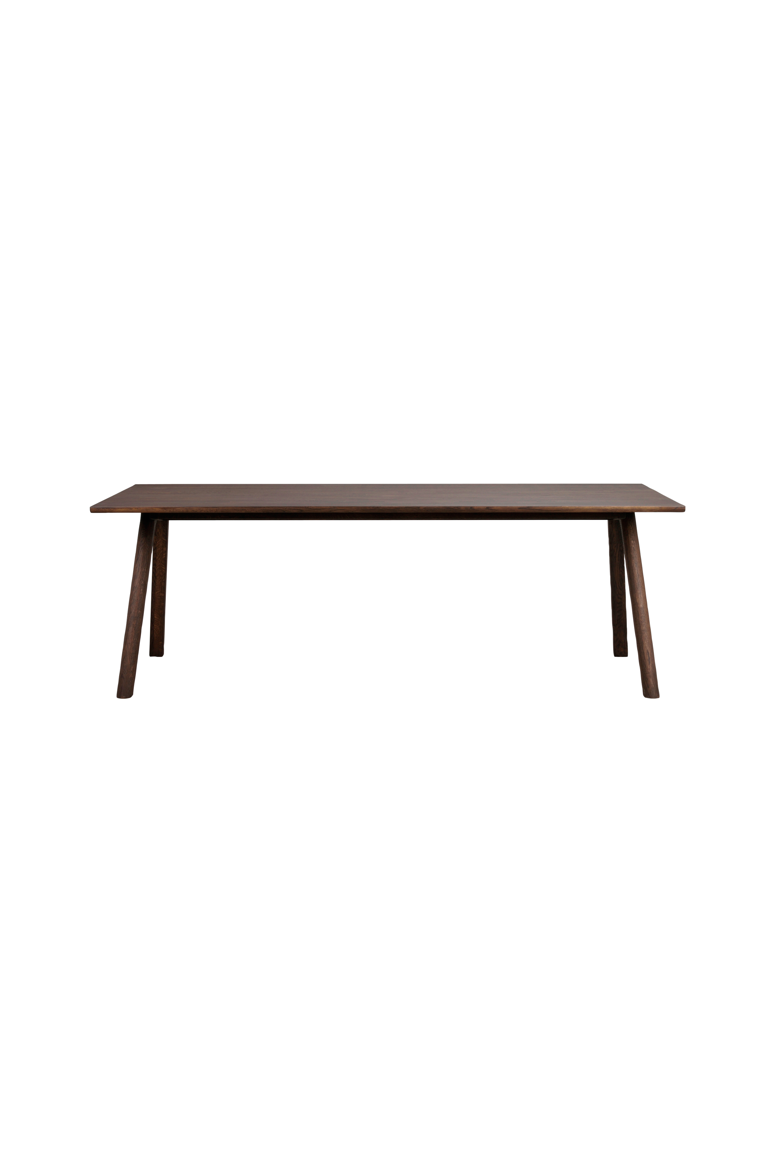 Clapperton är ett matbord i massivt trä med en stark designidentitet och hög visuell effekt. Tillverkat i Europa. Träet är fingerskarvat för att ge ett slående uttryck och karaktär, och har även behandlats med rubioolja för att framhäva träets naturliga struktur och unika ton. Designen blandar raka och böjda linjer på ett harmoniskt sätt. De utåtvinklade benen möts i en elegant skarv där varje benpar bildar ett enda skulpterat element, en subtil men sofistikerad detalj som förstärker bordets uttryck. Resultatet är en dynamisk men ändå lätt silhuett som blir en riktig mittpunkt i alla moderna hem.