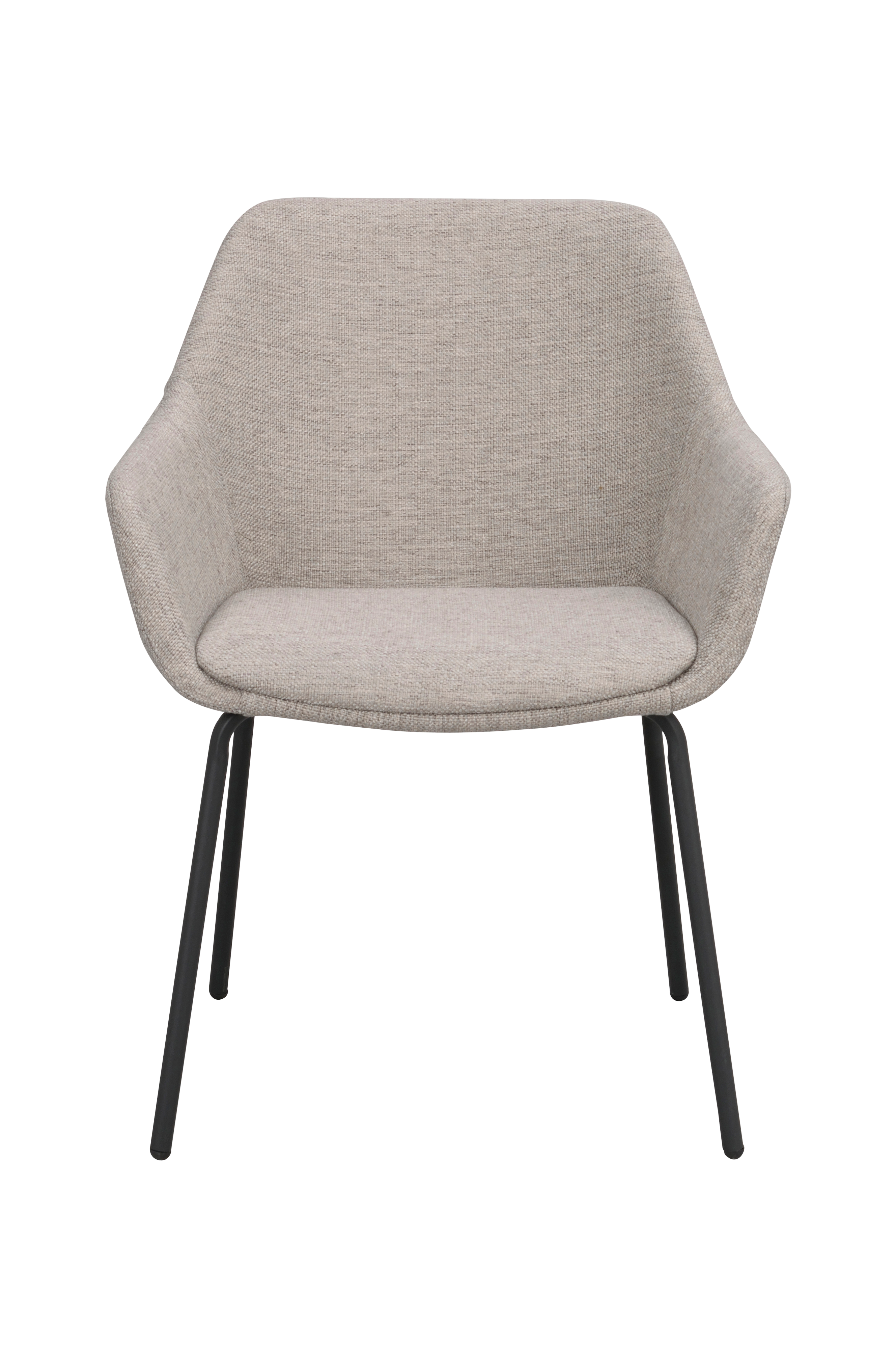 Haley karmstol med sits i ljusgrått tyg och svarta metallben. Bredd 59 cm, djup 61 cm, höjd 80 cm. Stolen har hög sittkomfort och passar fint till de flesta matbord oavsett stil. 2 st stolar ingår i paketet.