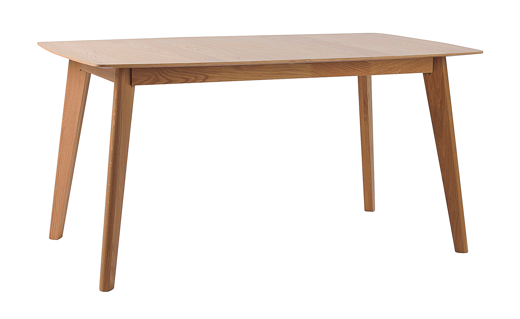 Stilrent och tidlöst matbord i skandinavisk design. Fanerad bordsskiva och formsvarvade ben i lackad ek. Matbordet har en dold iläggsskiva under bordsskivan. Längd 150 cm, bredd 90 cm, höjd 75 cm och Maxlängd 195 cm. Montera själv.
