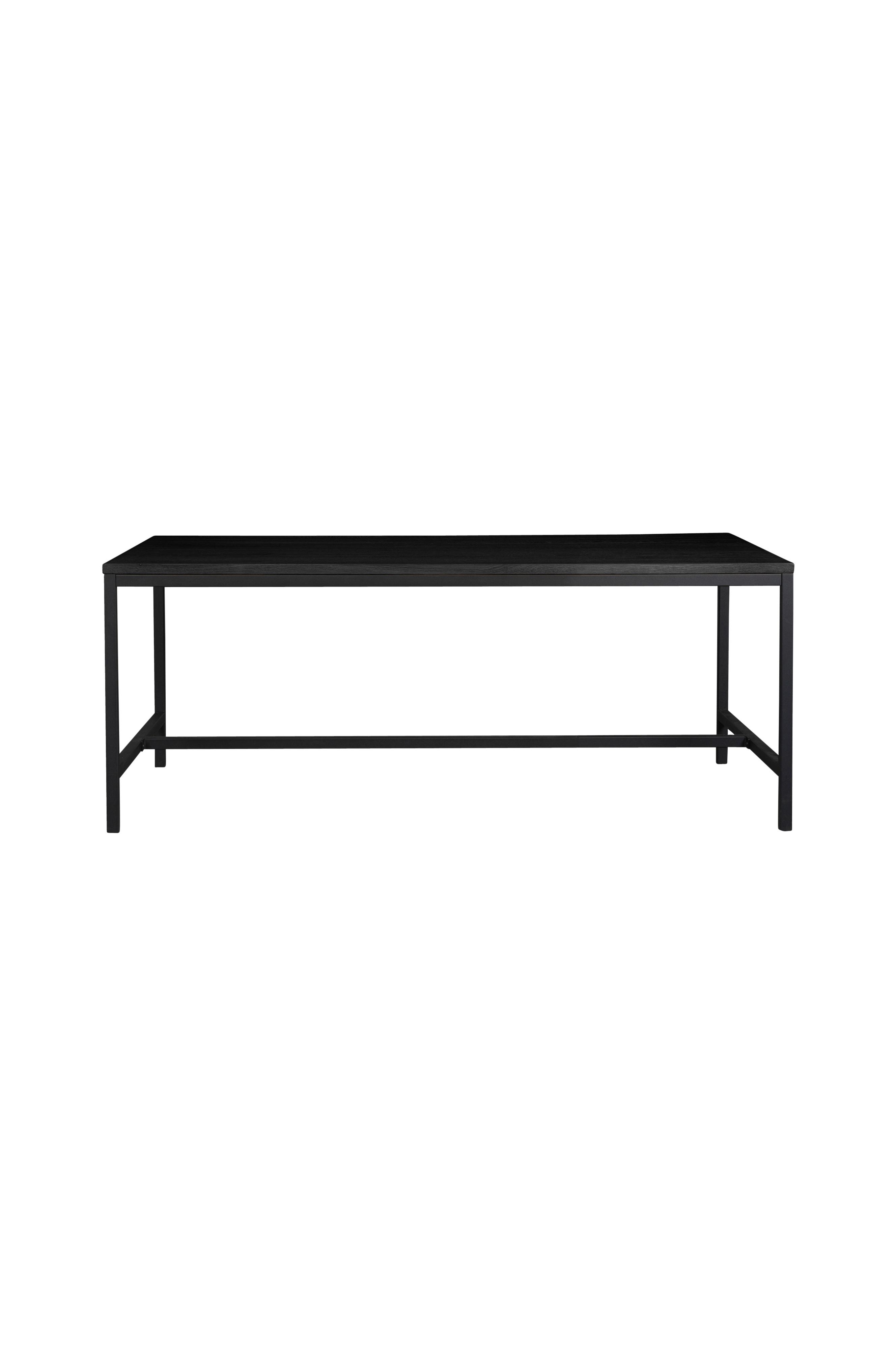 Everett matbord med mått längd 180 cm, bredd 100 cm, höjd 75 cm i stilren och modern design. Massiv bordsskiva i svartlackad europeisk ask och svarta metallben. Bordsskivan har en lätt borstad, lackerad yta. Matbordet ingår i vår serie Everett.